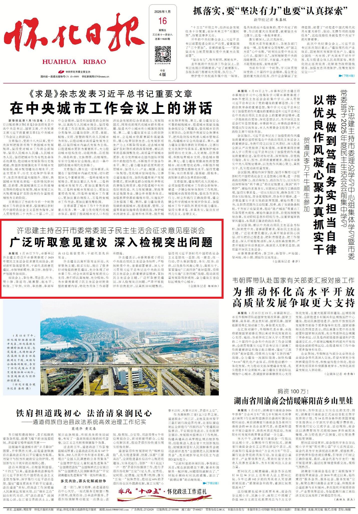 (1月15日下午,市委书记许忠建主持召开市委常委班子2025年度民主生活会征求意见座谈会。怀化日报全媒体记者 彭军 摄)