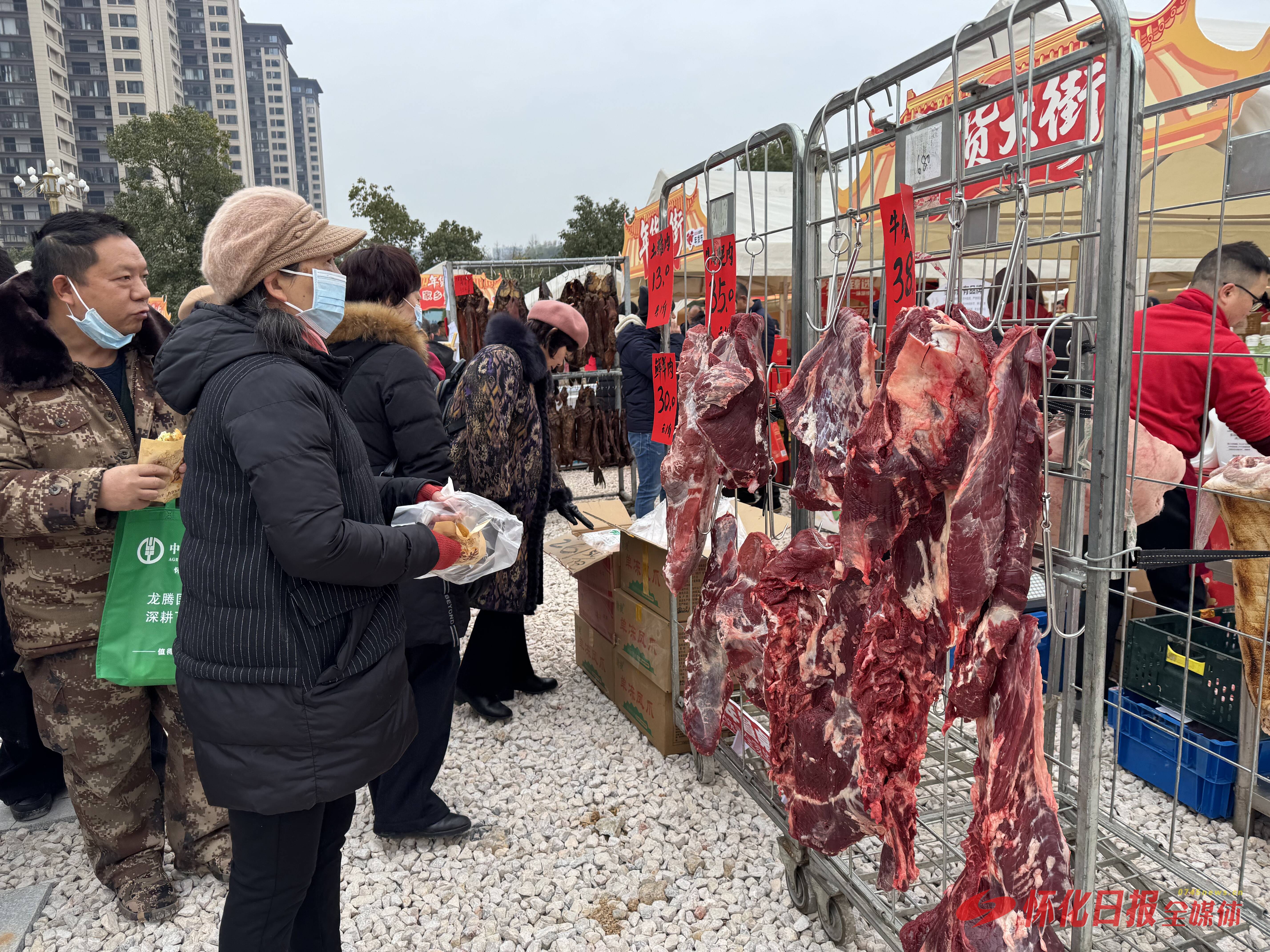 活动设置了怀商特色年货区、民生年货惠民区、东盟水果开柜区、住房展示等多个展区,从腊味干货、粮油副食到春联花卉、非遗特产,再到东盟直采鲜果,各类年节商品一应俱全,满足了市民“一站式”采购需求。