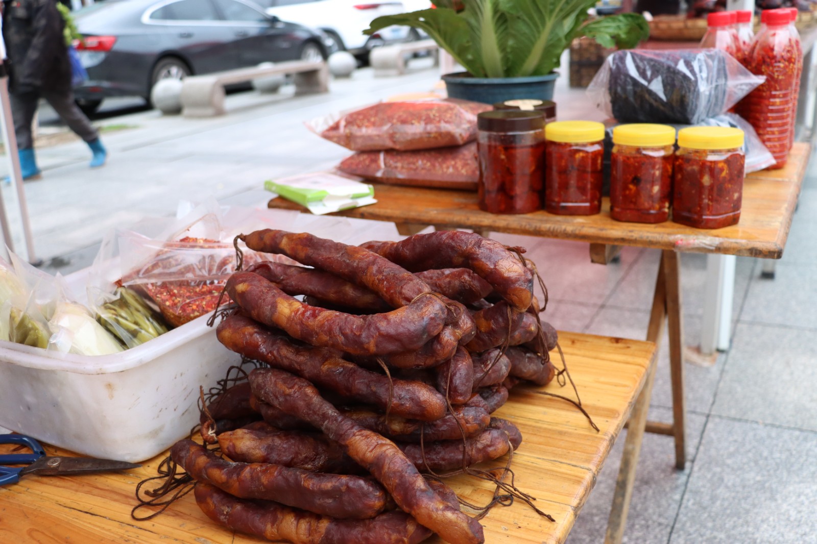各个摊位上,猪血丸子、手工糍粑、魔芋、火神婆黄金贡柚、香肠腊肉、生态大米等会同本土的“舌尖年味”令人垂涎欲滴。在若水猪血丸子摊前,老板李有梅热情地介绍:“我们的若水猪血丸子已经是市级非遗了,用猪血、猪肉和豆腐手工制作,欢迎大家尝尝!”醇厚的香味弥漫开来,引得不少市民驻足挑选购买。