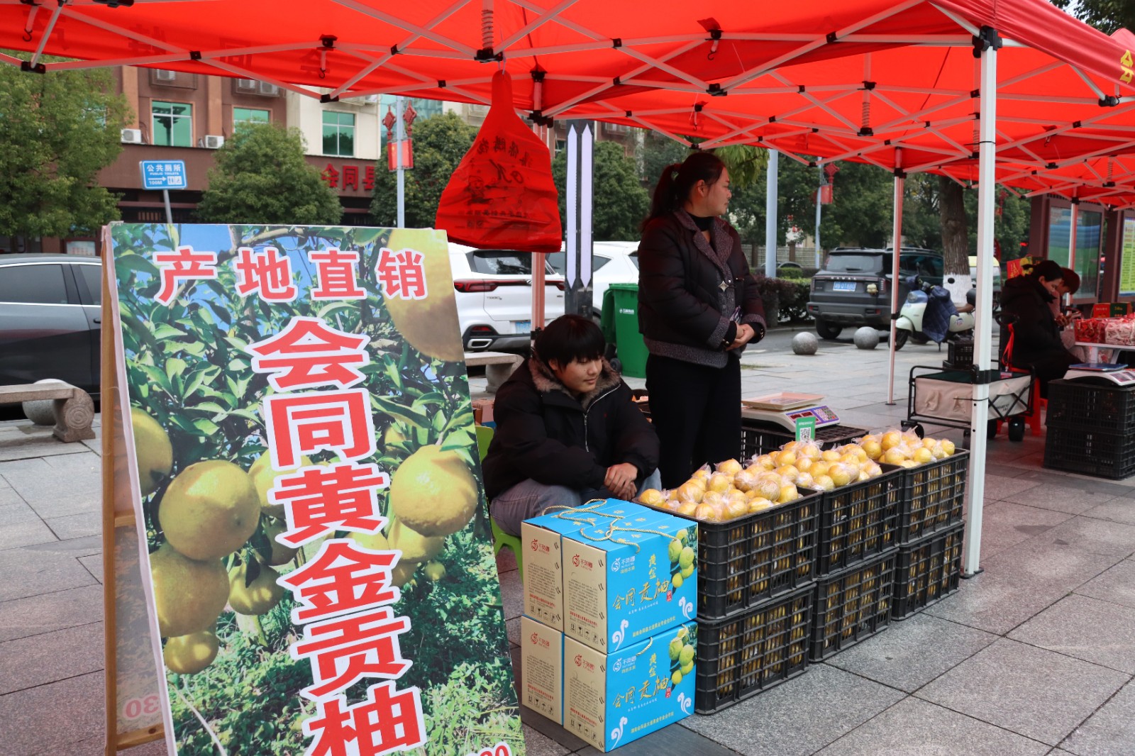 凭借卓越品质和本土特色,黄金贡柚备受青睐,不少市民整箱采购。市民唐连买了两箱贡柚,满脸笑意:“这贡柚是我们会同的‘金字招牌’,皮薄汁多、清甜爽口,过年走亲访友送这个既有面子又有心意!”