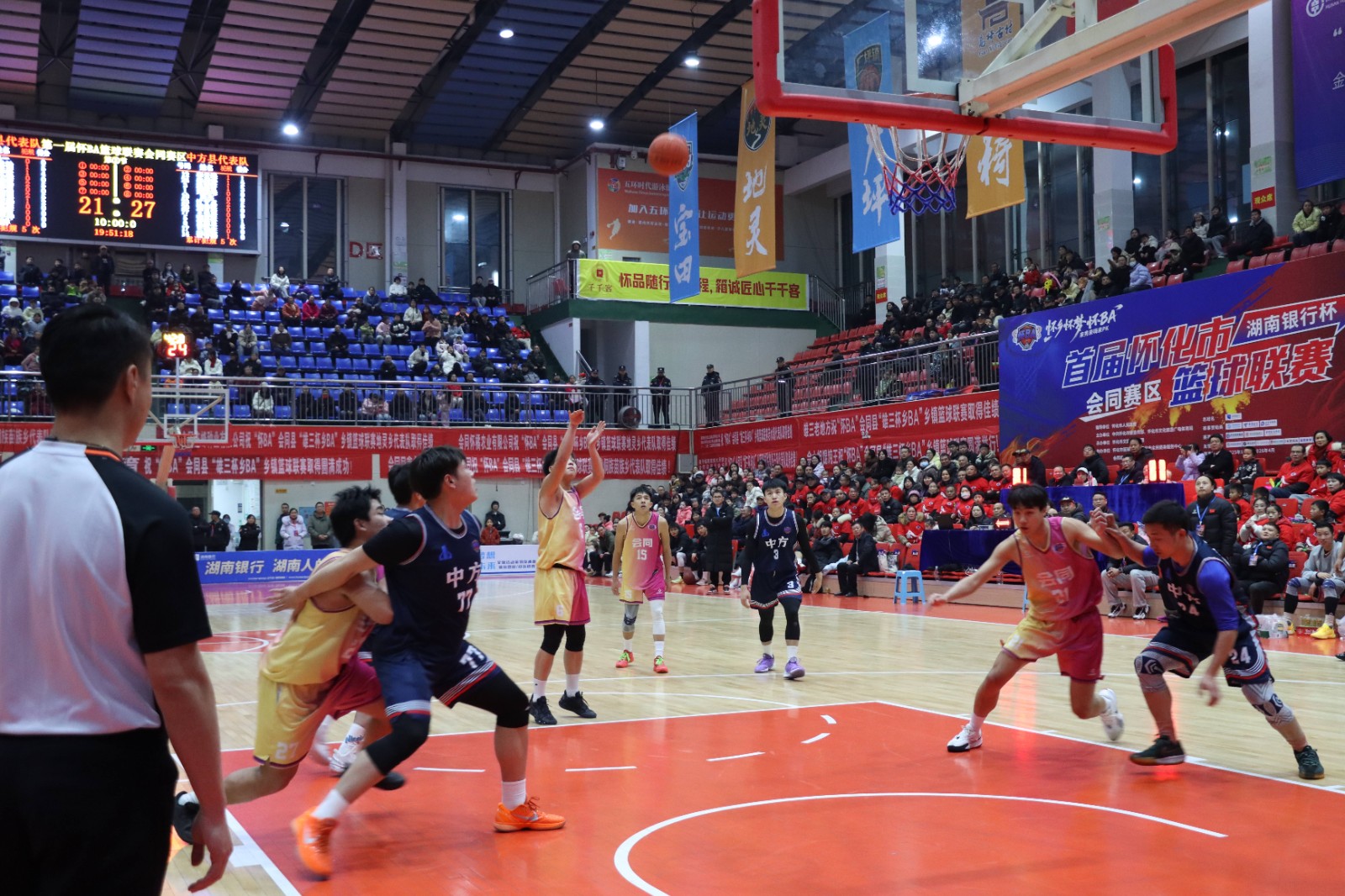 1月31日晚,“湖南银行杯”怀化市篮球联赛怀BA会同主场迎来与中方县代表队的对决。