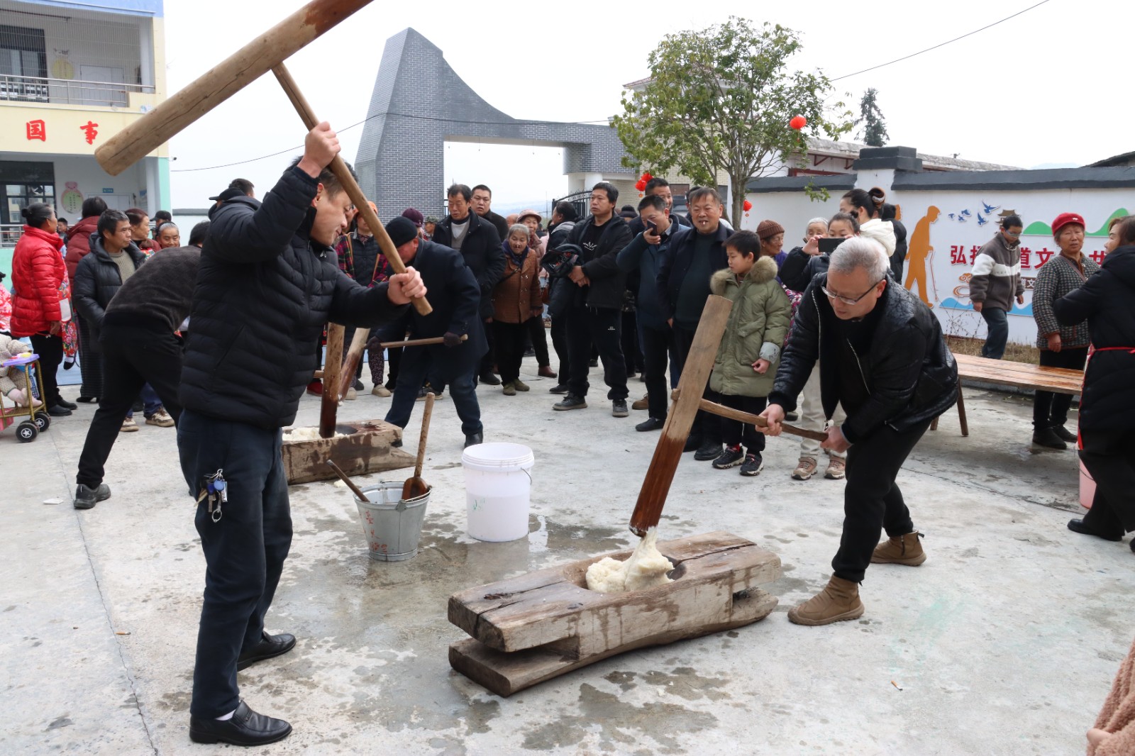 滚红牛场地内,村民们齐心协力、默契配合,在鼓劲声与欢呼声中推动“红牛”滚动前行,昂扬的气势中饱含对新年的美好期许。石臼旁,热气腾腾的糯米香气扑鼻,村民们轮番挥锤打糍粑,你一锤、我一锤,糯香与笑语交织,乡音与温情共融,传统习俗在协作与唠嗑间焕发新生。此外,竹竿舞的韵律动感十足,参与者敏捷跳跃,引得围观群众阵阵喝彩。现场群众沉浸于民俗活动的独特乐趣,全方位感受着新春的喜悦与乡土的醇厚温情。