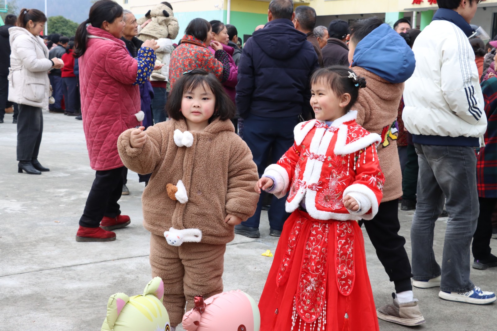 活动现场一片欢声笑语,处处洋溢着喜庆祥和的新春气息。滚红牛、打糍粑、竹竿舞等各类活动同步展开、热闹非凡。