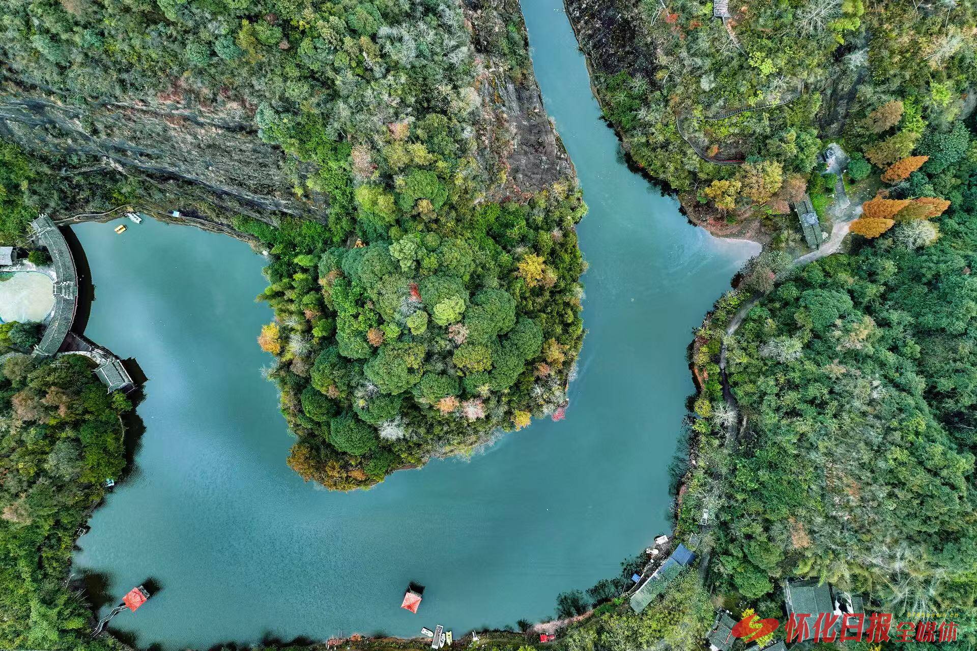 (通道独岩公园内色彩斑斓,碧水与彩林相映成趣。石猛雷 摄)