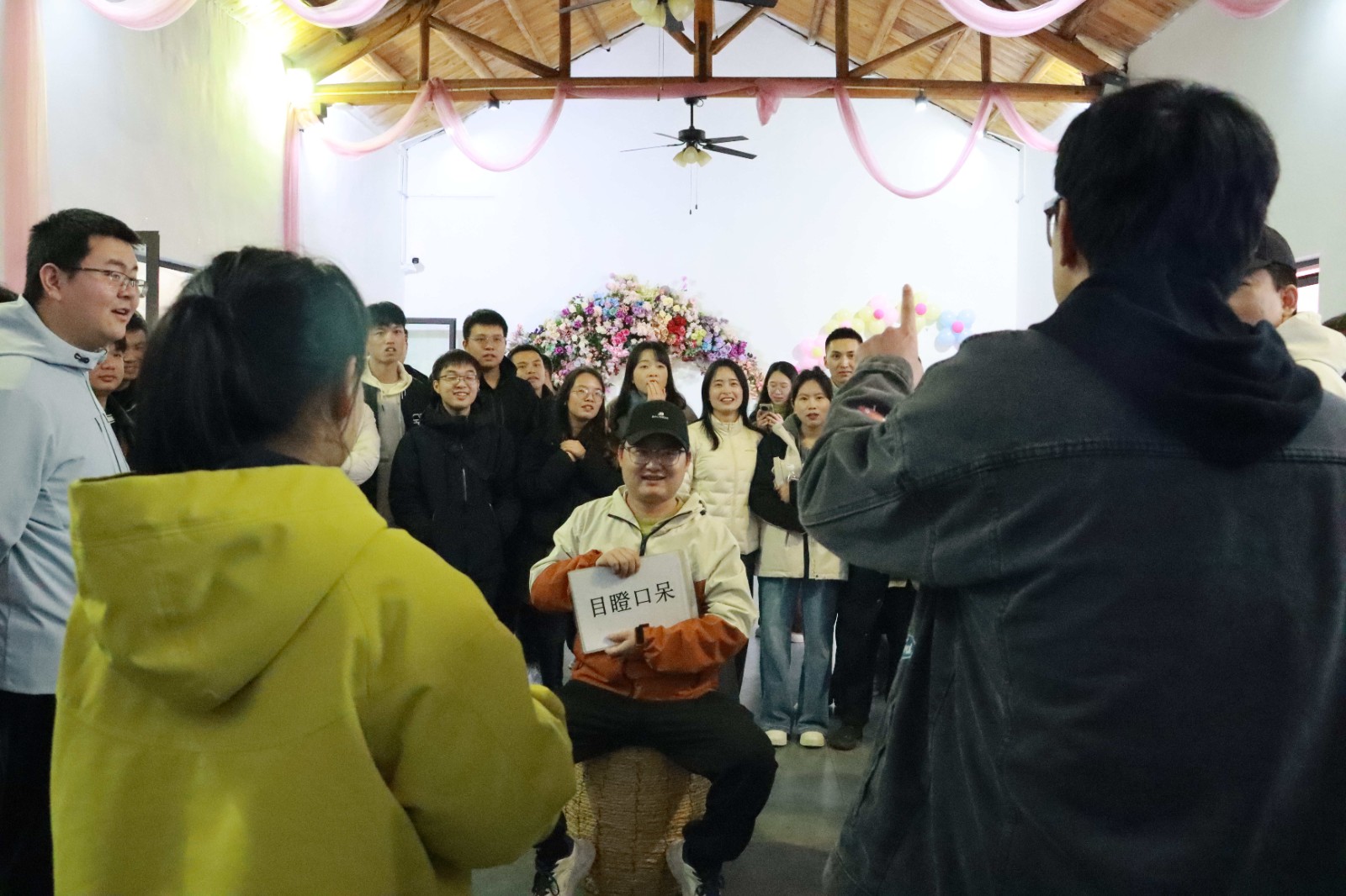 活动伊始,青年们纷纷在签名墙郑重签下名字,以独特的方式开启这场期待已久的春日邂逅。随后,趣味横生的互动游戏拉开帷幕:开心大锤释放压力、你比我猜默契比拼、背对背拥抱协作共赢……一系列精心设计的游戏迅速打破陌生感。青年们全情投入、配合默契,欢笑声此起彼伏,隔阂在互动中悄然消融,现场氛围渐入佳境。