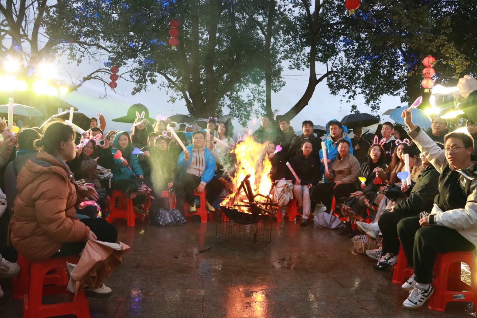 夜幕降临,荧光音乐晚会璀璨开场。荧光棒点点闪烁,与优美旋律交相辉映,青年们载歌载舞、自由交流,浪漫的氛围在夜色中持续升温,整场活动达到高潮。