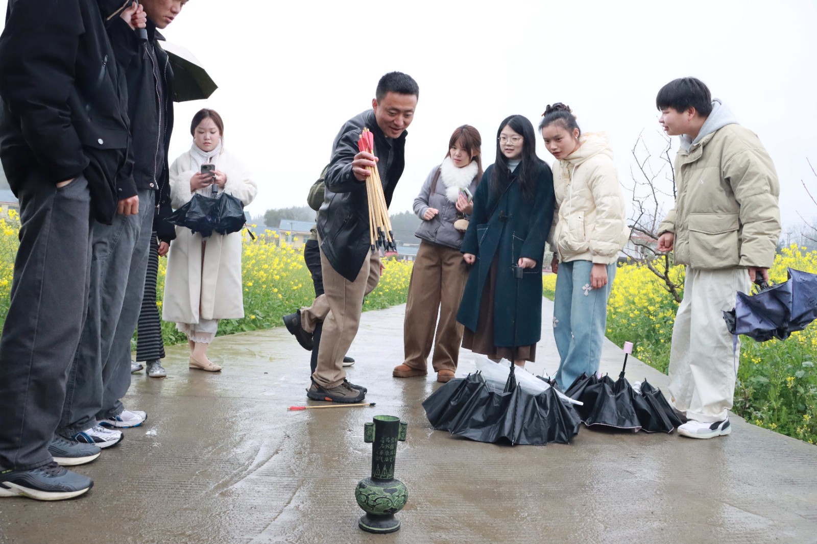 游戏过后,青年们结伴开启春日游园之旅。漫步于堡子镇一望无垠的油菜花田,满目金黄绚烂,微风拂过,层层花浪随风摇曳,清新的花香与泥土的芬芳交织沁人心脾。大家结伴完成书写“囍”字、花海创意合影等打卡任务,在繁花簇拥中定格专属的浪漫瞬间,交流间好感与默契悄然生长,青春的故事在春光里悄然萌芽。