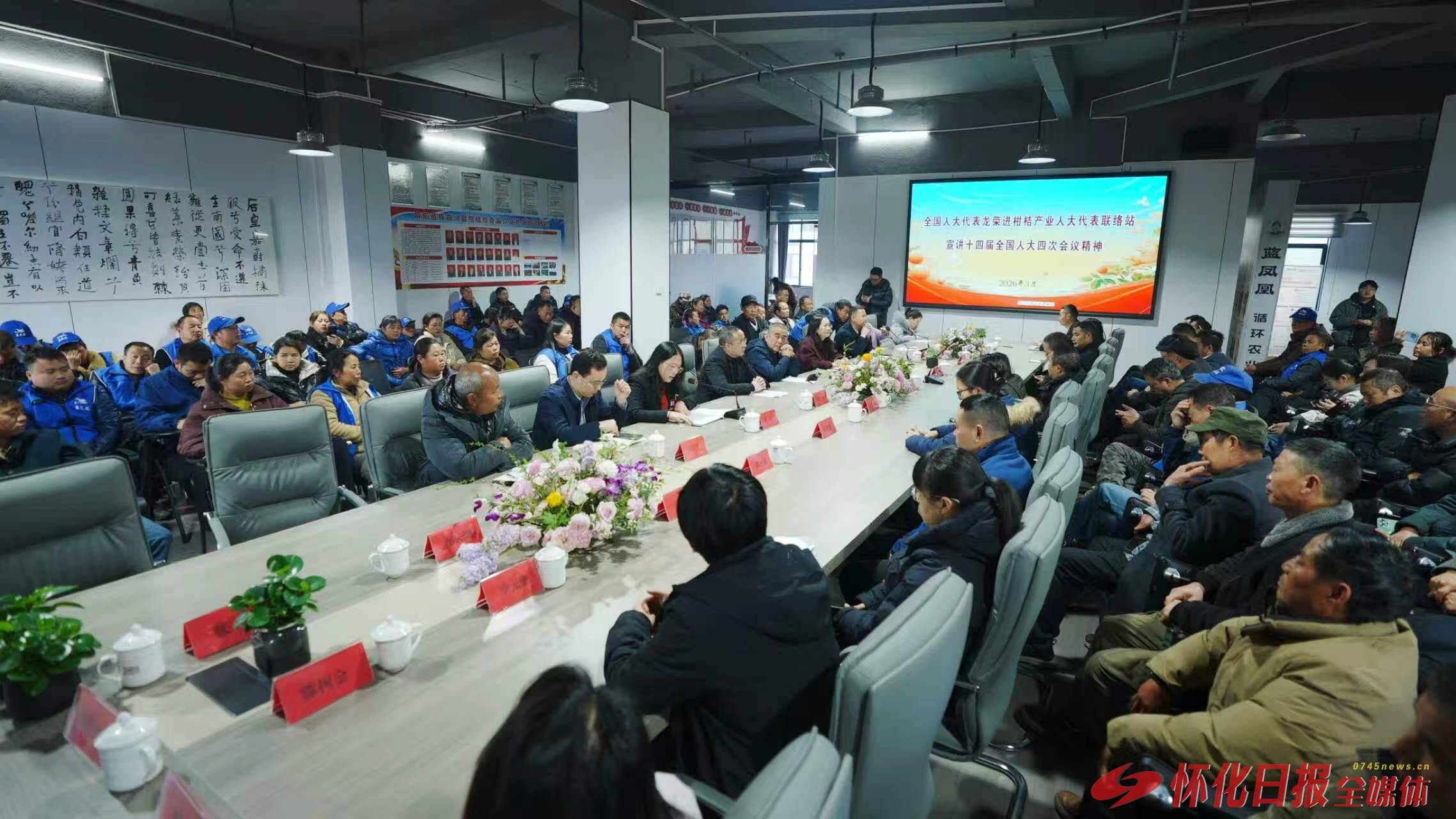(龙荣在麻阳柑橘产业人大代表联络站宣讲全国两会精神。 以上照片均为全媒体记者 张卓 通讯员 符宁波 摄)