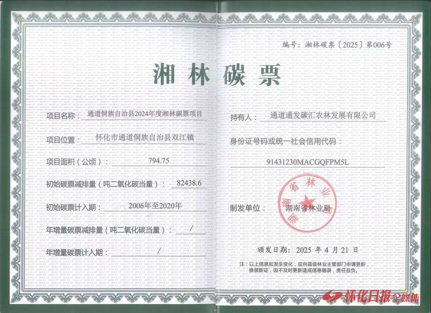 (通道湘林碳票)