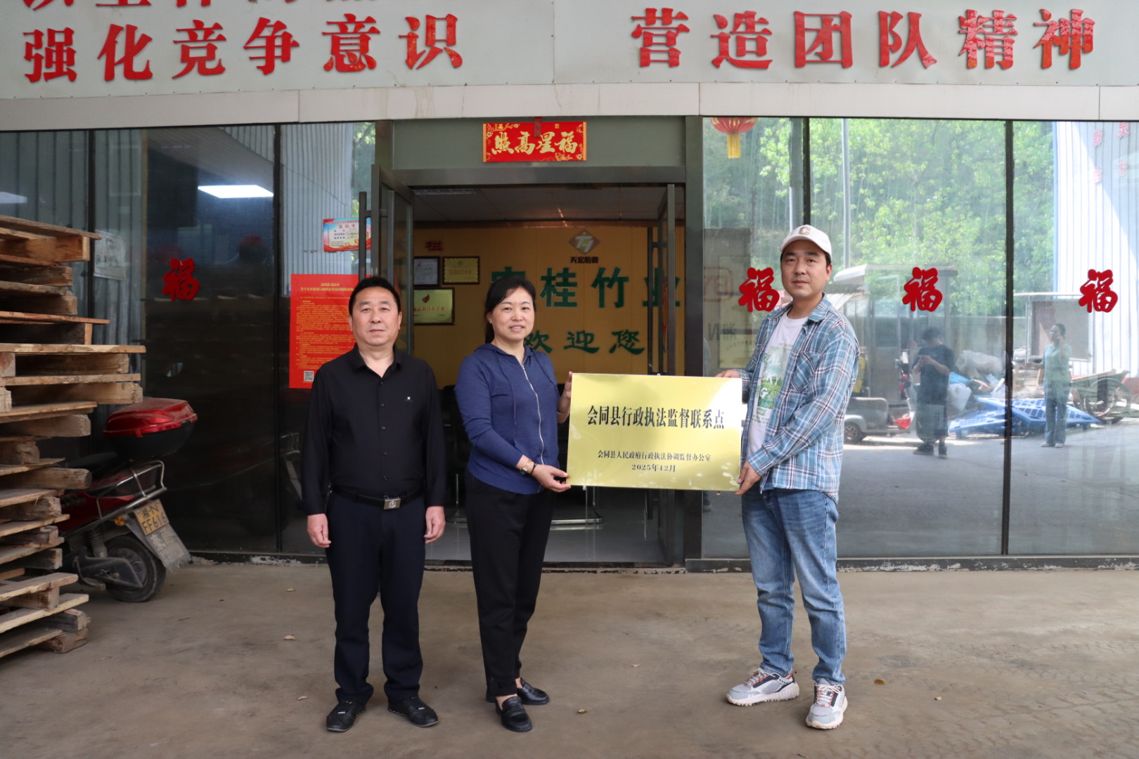 在湖南宏桂竹业有限公司,县司法局负责人把“会同县行政执法监督联系点”牌匾郑重交到公司安全生产管理员相里鹏超手中。相里鹏超和同事一起把牌匾钉挂在办公区最显眼的位置:“牌子挂上墙,监督就常在。以后涉企执法有没有不规范,我们第一时间就能发声。”湖南宏桂竹业有限公司是会同楠竹精深加工领域的重点企业,依托本地丰富竹资源,带动群众就业增收,为乡村振兴与特色产业发展注入活力。