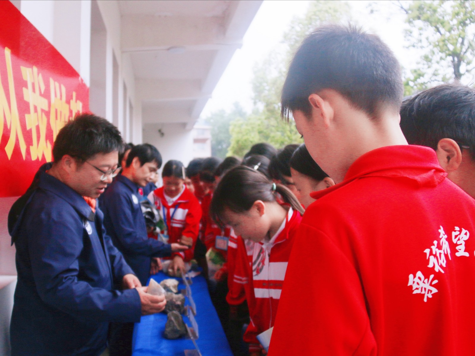 随后,该中心向学校捐赠200册科普图书,为孩子们打开科学之窗。户外展区里,岩石标本与科普展板前围满“小小地质员”——他们触摸岩石纹理、聆听成因讲解,将地质奥秘与环保理念悄然融入诗意的想象。“我要把岩石故事写成诗,做地球小卫士!”一名“田野诗班”的学生捧着手册说道。