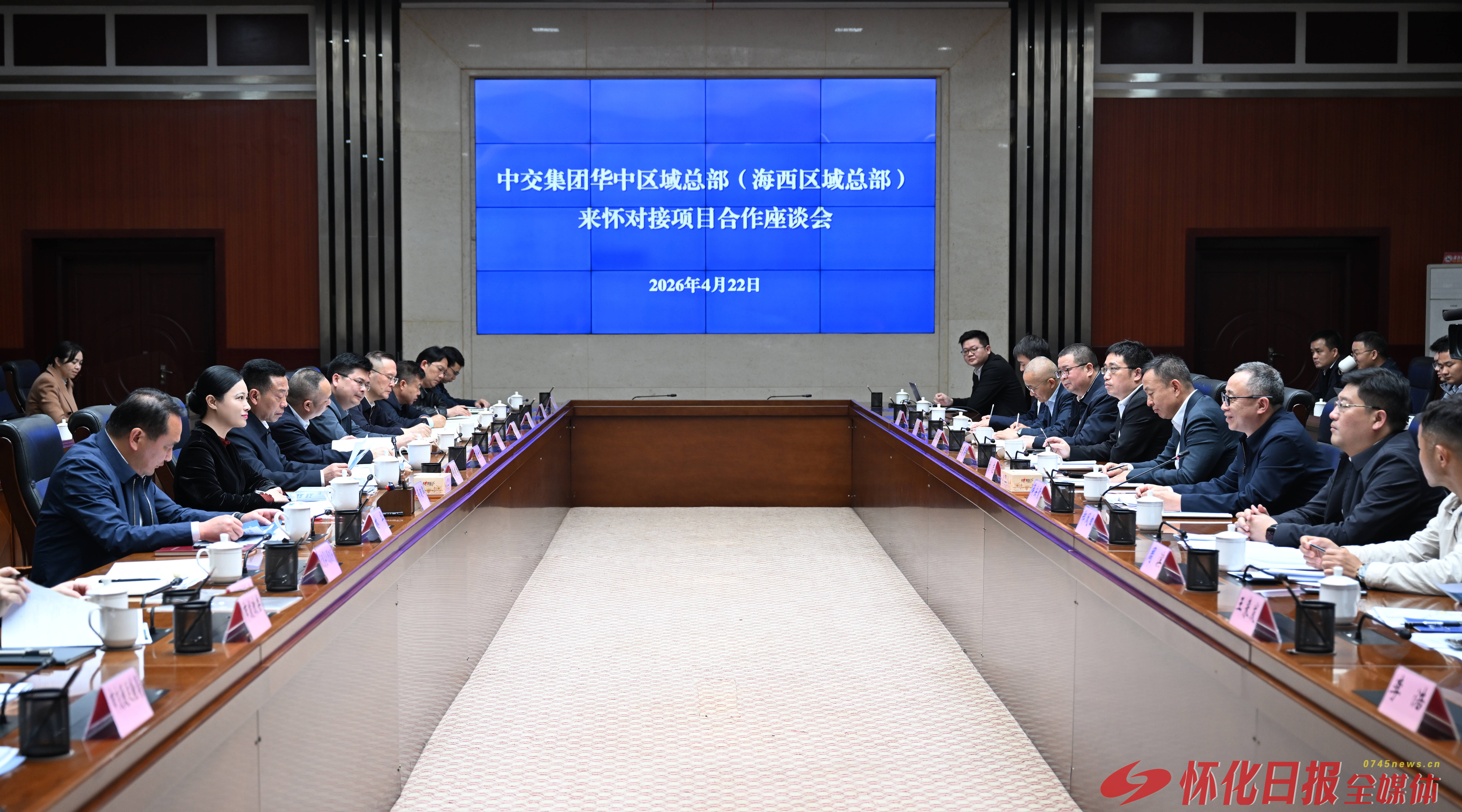 怀化日报全媒体讯4月22日下午,市委副书记、市长韦朝晖与中交集团华中区域总部(海西区域总部)董事长薛安青一行会谈,就推进项目、深化合作开展交流。市领导余建勇,市政府秘书长林华参加。