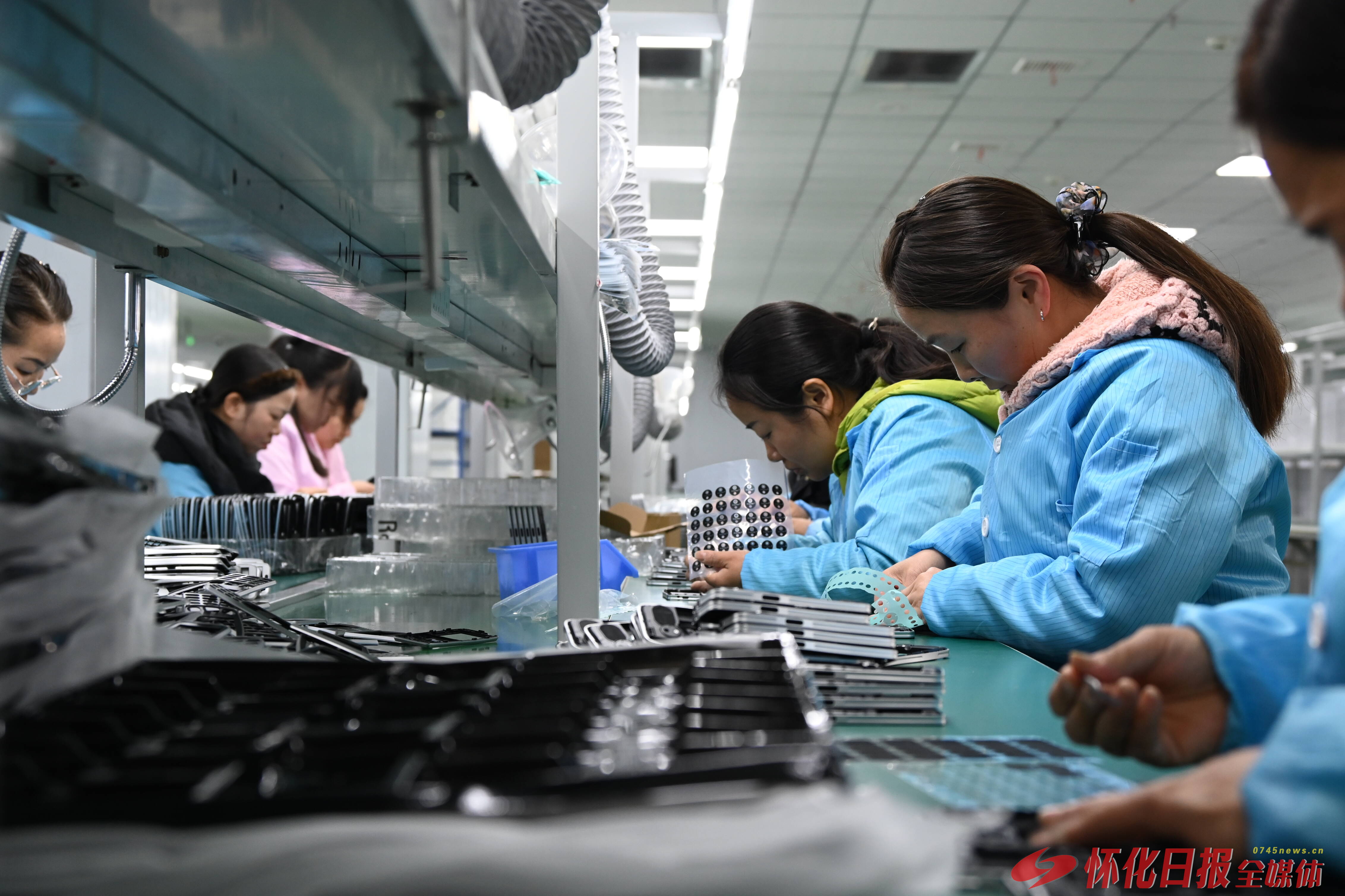 (怀化就业形势稳中向好 。图为怀化高新技术产业开发区怀化市启悦智能科技有限公司忙碌的生产线。怀化日报全媒体记者 张卓 摄)