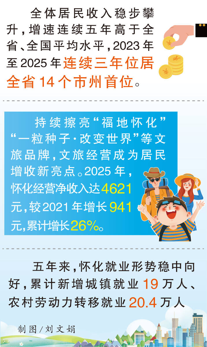 怀化日报全媒体讯“十四五”时期,怀化市委、市政府深入贯彻落实党中央、国务院决策部署及省委、省政府工作要求,锚定“三高四新”美好蓝图,深入实施“五新四城”战略,奋力推进“二次创业”,扎实做好港产城旅“四篇文章”,在推动经济社会高质量发展的进程中,持续夯实民生根基,推动居民收入实现较快增长,让发展成果更多更公平惠及全体市民。