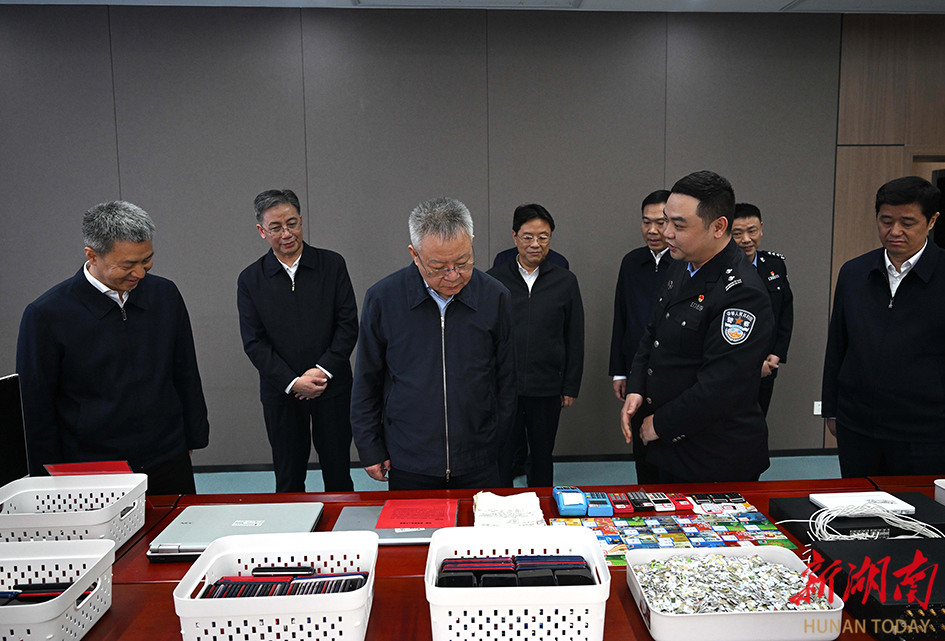 在涟源市公安局反诈中心,沈晓明现场观摩反诈打跨侦查研判演练,与工作在境内外反诈一线的民警远程交流,了解涟源市打击电信诈骗犯罪、排查整治社会治安突出风险隐患等工作情况。他强调,要不折不扣抓好中央巡视反馈意见整改工作,进一步提高政治站位、深化思想认识,更加坚决有效打击电信网络诈骗活动,持续清存量、遏增量,积极发挥政策引导作用,全力打好反电诈攻坚战。