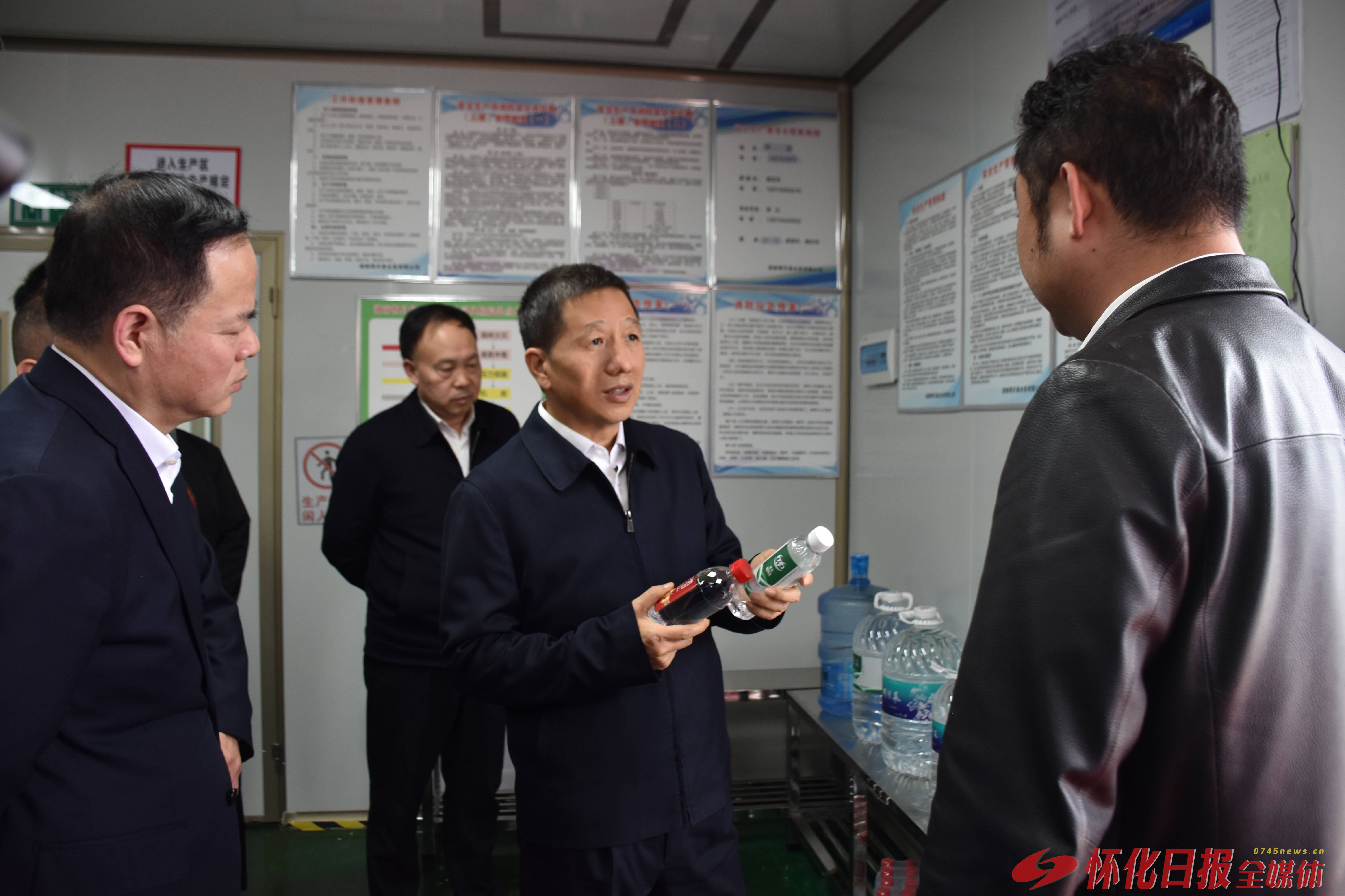 (4月1日,市委书记许忠建在溆浦县调研。图为许忠建在湖南明月泉水务有限公司详细了解企业经营发展、食品安全管理等情况。怀化日报全媒体记者 黄莎 摄)