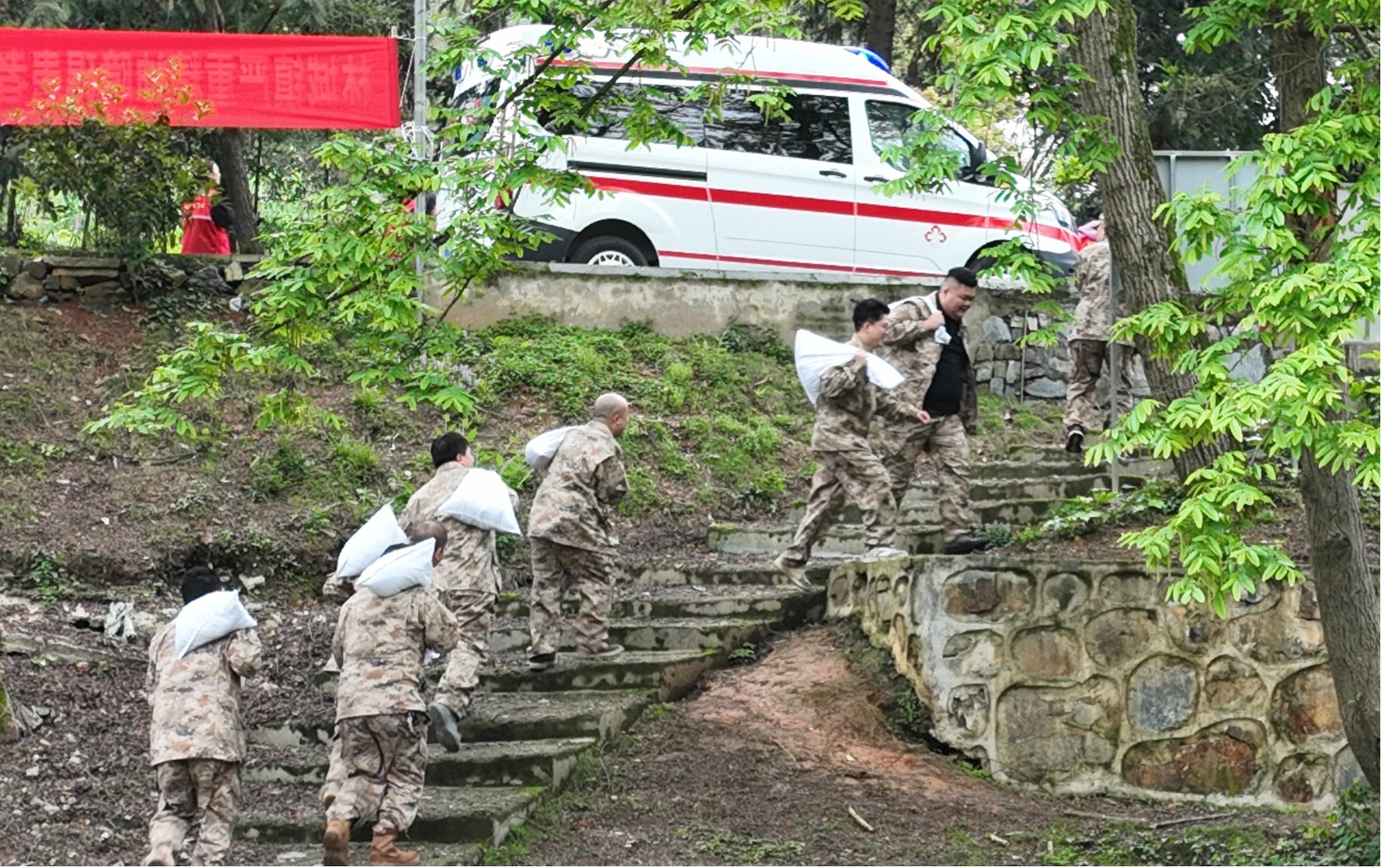 下午3时,随着指挥长一声令下,演练正式进入“实战”状态。在模拟因持续强降雨引发河道险情及地质灾害的场景中,镇防汛指挥部迅速响应,一张严密的“防护网”即刻铺开。抢险救援组冲锋在前,争分夺秒地加固危险区域,构筑起一道坚固的安全防线;安全转移组则化身“引路人”,按照预定路线,引导“受灾”群众迅速、有序地撤离至安全地带。在临时安置点,后勤保障组及时送上了饮用水等生活物资,医疗救助组也迅速对“伤员”进行了紧急救治与转运。从险情发现到人员安置,各环节环环相扣,生动演绎了“防、抢、撤、救”的全链条闭环。