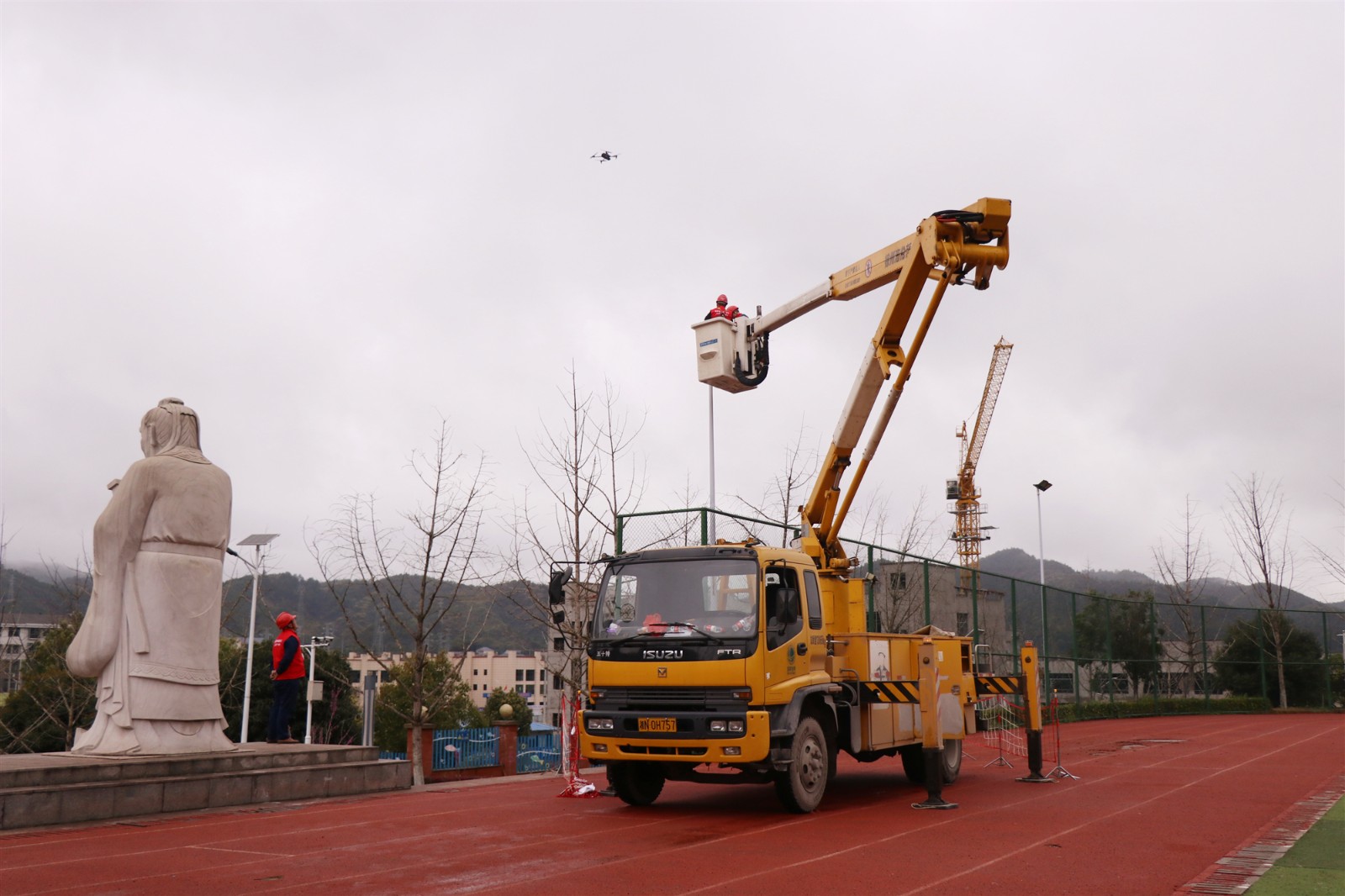 “我们班四位成员应城北学校的邀请,利用我们的设备和技术优势,义务为城北学校的路灯及旗杆进行维修。”国网会同县供电公司带电作业班班员梁栋对记者说,“我们正在进行的是路灯的维修工作,一盏大约维修40分钟,下一步我们东方红这个队伍将继续发扬雷锋精神,争做时代先锋。”
