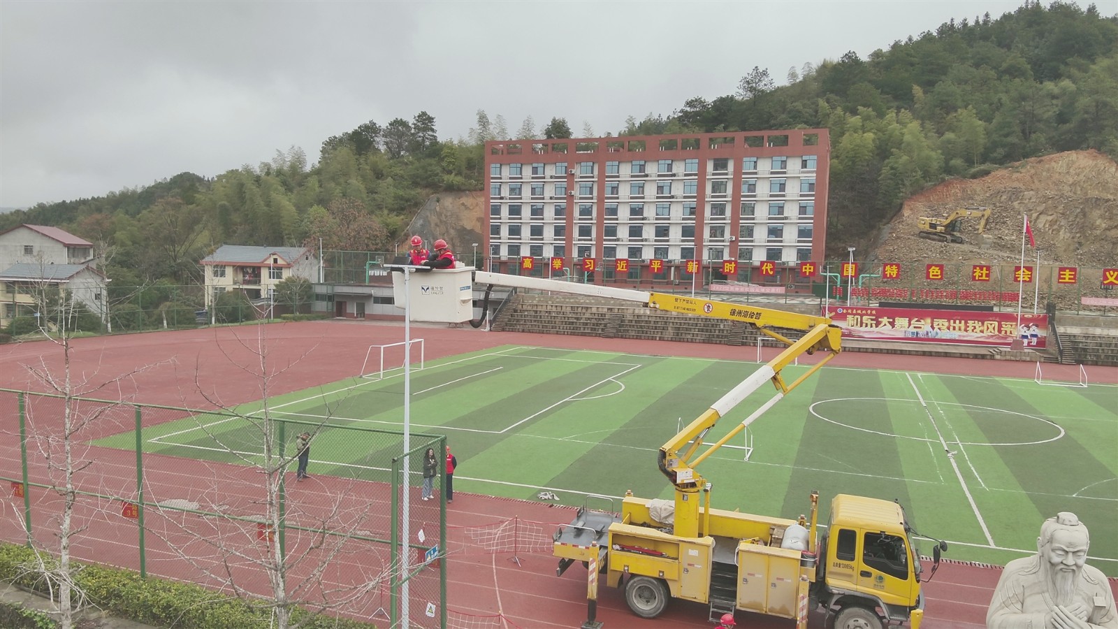 “我发现学生在训练的时候,学校操坪这个灯光比较暗,有几盏已经损坏,我第一时间去联系国家电网,因为他们有这样设备可以进行维修,电网非常热心,马上进行帮我们实地勘察,然后帮我们进行维修,非常感谢国家电网。”城北学校总务主任赵文说。