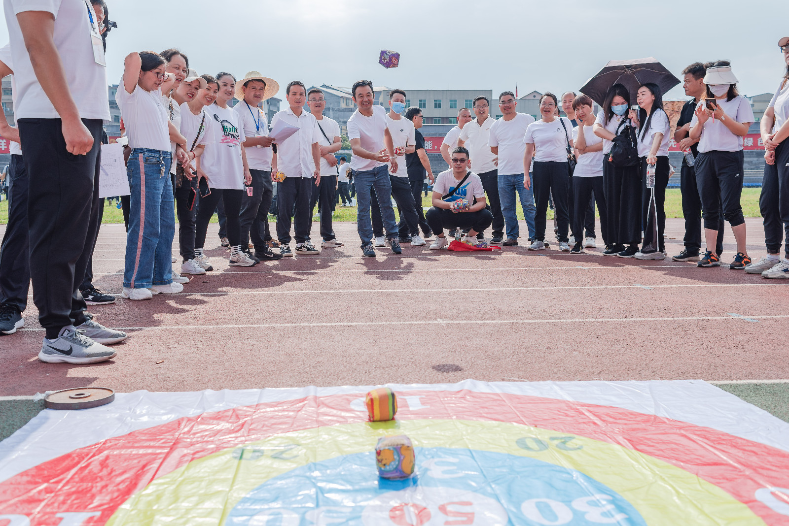 运动会设有投掷沙包、趣味飞镖、九宫格射门、无敌旋风跑、旱地龙舟多个比赛项目。整场运动会趣味十足,现场气氛热烈,精彩纷呈。赛场上,参赛选手发扬“友谊第一、比赛第二”竞赛精神,团结一心、奋勇拼搏,为取得优异成绩而尽情挥洒汗水;赛场外,阵阵喝彩声、鼓掌声、欢笑声、助威声此起彼伏,响彻赛场。