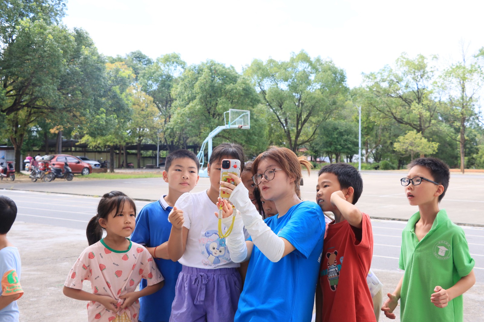 “我们此次三下乡开设了舞蹈、语言、体育、手工、合唱等课程,旨在丰富他们的课外生活,提升综合素质,比如说今天《会同绘童心》活动,利用AR模型的虚拟现实体验项目,在当地的孩子们心中种下了一颗科技的种子。”湖南大众传媒职业学院暑期三下乡社会实践队志愿者陈嘉说。