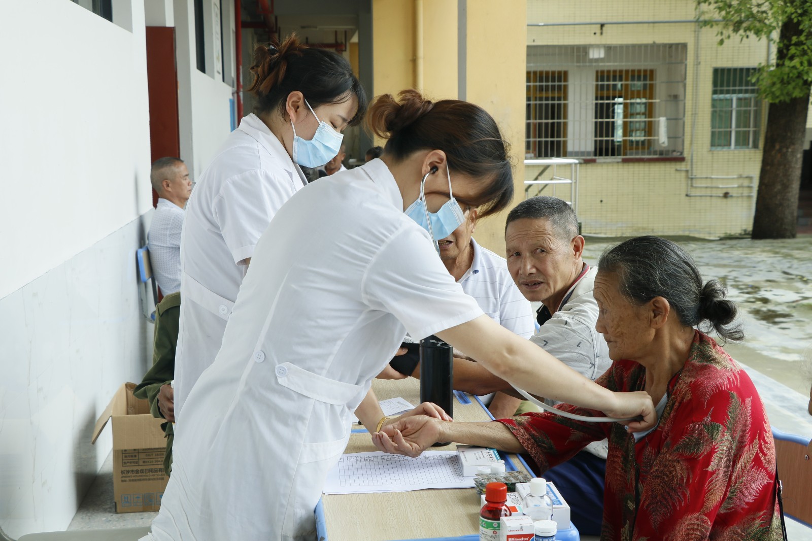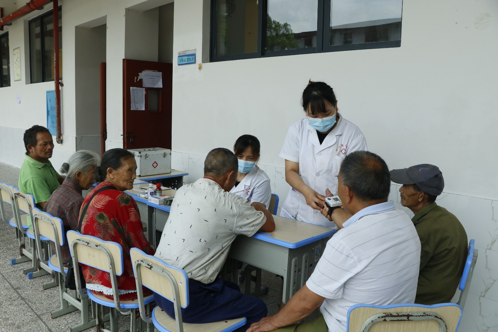 “老人家,您的血压是正常的,您还有哪里不舒服的吗?”在粟裕中学安置点内教室走廊上,护士们正在给转移人员测体温、量血压并细心询问身体状况。由坪村镇卫生院组建的医疗服务队,每天上午对各安置点进行定点消毒杀菌的同时,也为群众提供各项基本的身体检查服务,除此之外也提前做好常见病用药的保障工作,为他们提供健康监测、药品配送、健康宣教等服务,保障转移群众在过渡期内的身体健康。