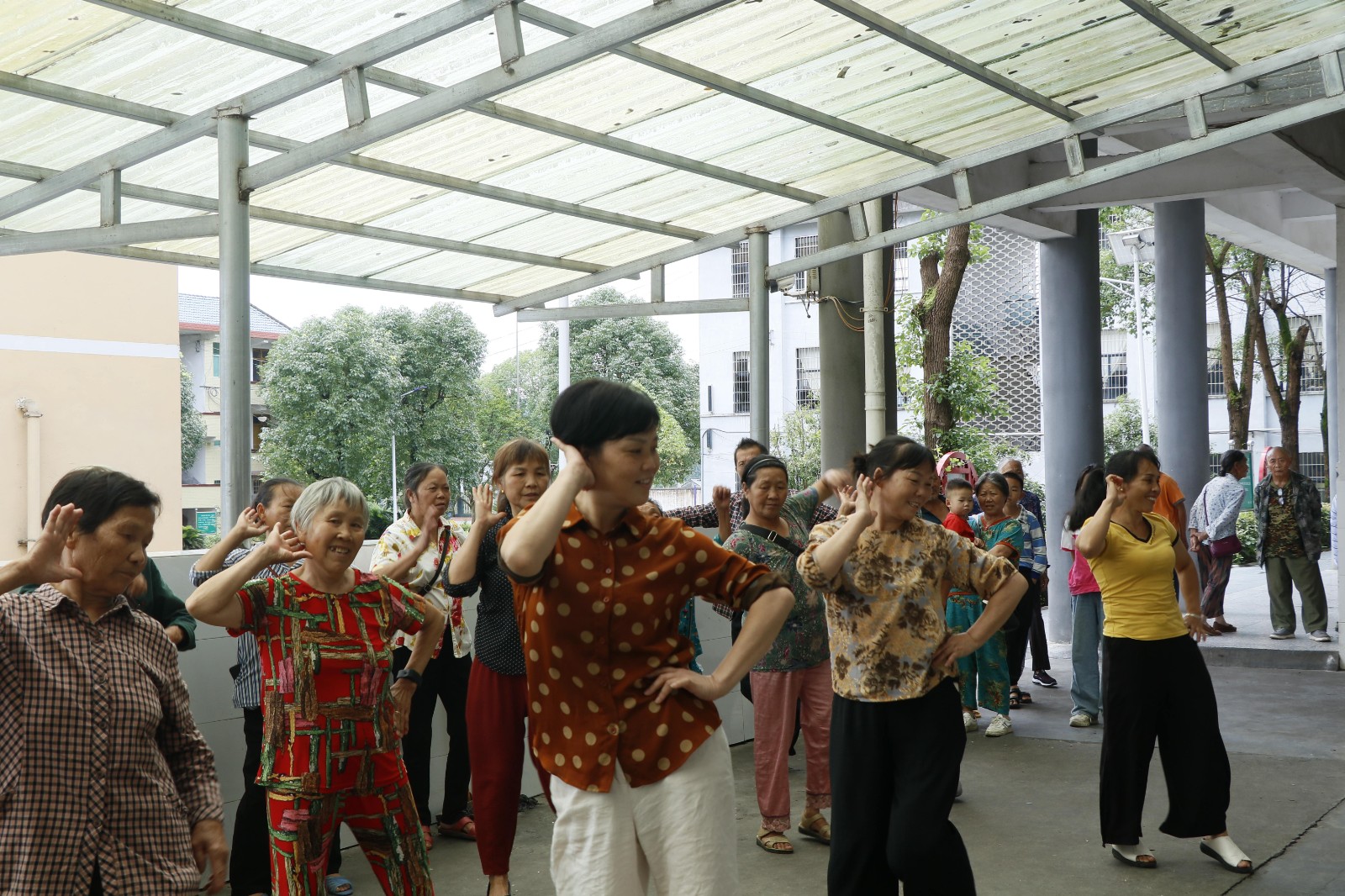 7月2日,一首首悠扬欢快、耳熟能详的音乐在坪村镇粟裕中学安置点响起,政府工作人员正在耐心地教转移人员练习舞蹈分解动作;优美轻快的旋律中,众多转移群众围成圈、连成排,热热闹闹地跳起了广场舞。与此同时,在学校的多媒体教室内,转移群众有的围坐在教室的课桌板凳上下象棋,有的则在津津有味地观看多媒体设备放映的电视剧,有的与同伴们打扑克牌……一场场休闲放松活动抚慰了群众的情绪,驱散了洪水带来的阴霾,安置点内洋溢着欢快轻松的氛围。