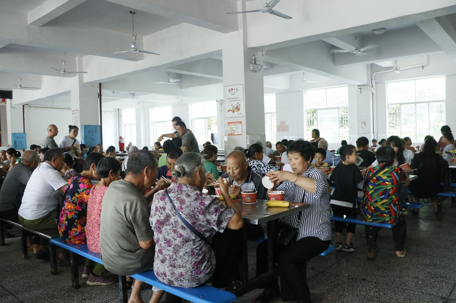 “请大家到食堂有序排队领饭就餐!”随着一声吆喝,转移群众有序排队,依次接过热腾腾的饭菜,“饭菜很合我的胃口,我很感谢党委政府在这个非常时间能够提供给我们这样的条件,把我们的吃住放在第一位,满足我们的需求!”木臻村四组的石继秀边说边向工作人员们竖起了大拇指。乡政府每天还为受灾群众准备了香蕉、苹果、西瓜等水果享用,每到就餐时间有序分发,为大家提供营养均衡的合理餐食。