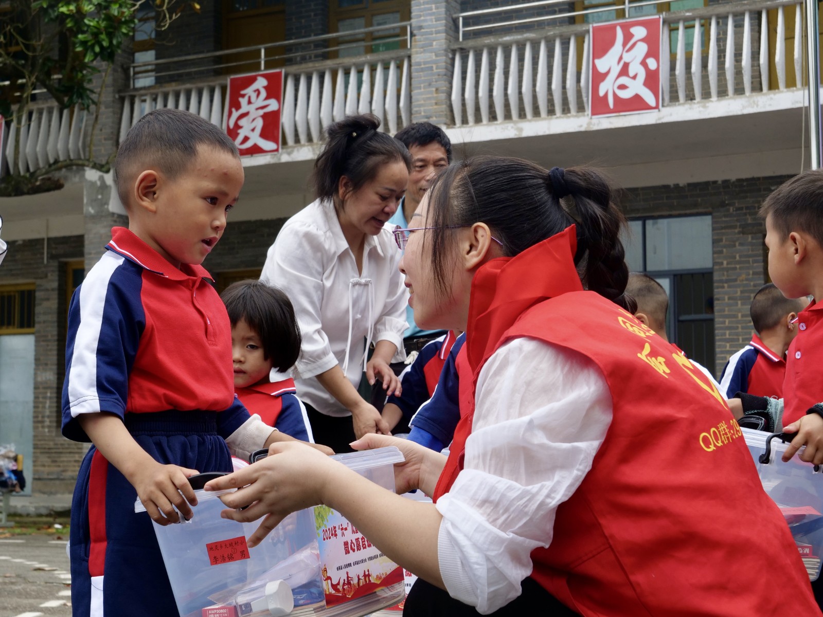 “今天我收到了文具还有书包,我今天很开心。”大坡小学6岁的学生李昕婷在接过志愿者送来的书包、学习用品后,迫不及待地拆开礼物,跟小伙伴们分享喜悦。