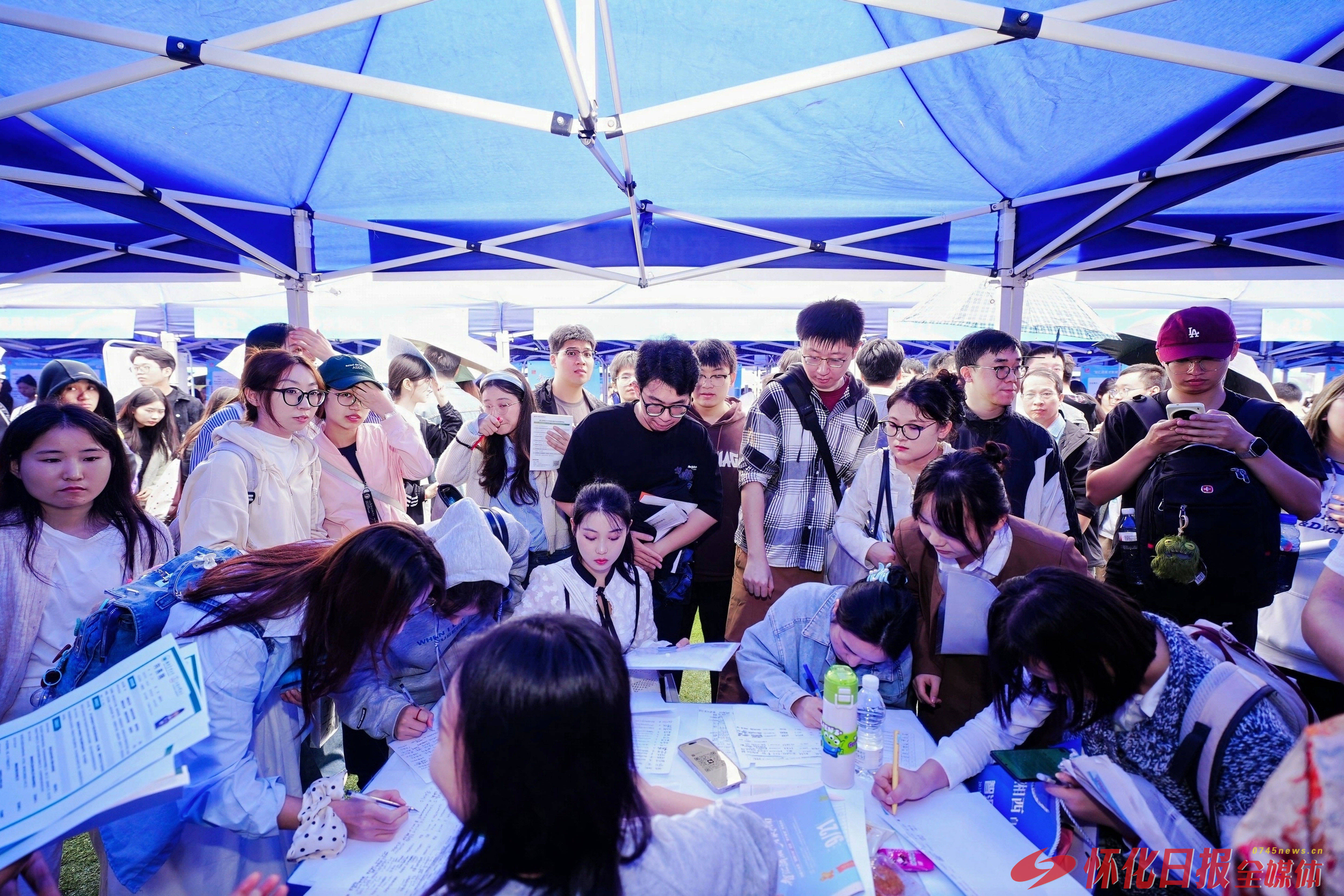 在各大招聘展位上,怀化的高校、企业展位前挤满了前来咨询和投递简历的高校学子。在湖南辰州矿业有限责任公司的展位前,来自南华大学的赵小龙刚刚投递出自己的简历。“我是甘肃天水人,在湖南读书,刚刚看到怀化的一些招聘公司,发现这家公司发展了很多年了,比较稳定,工资方面也比较满意,非常想来湖南这边发展。”赵小龙说。