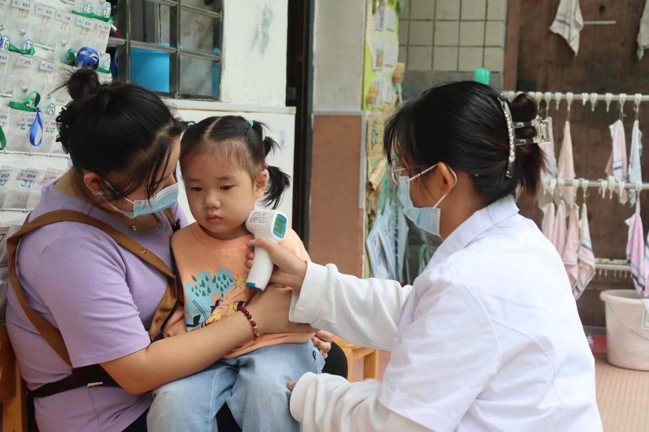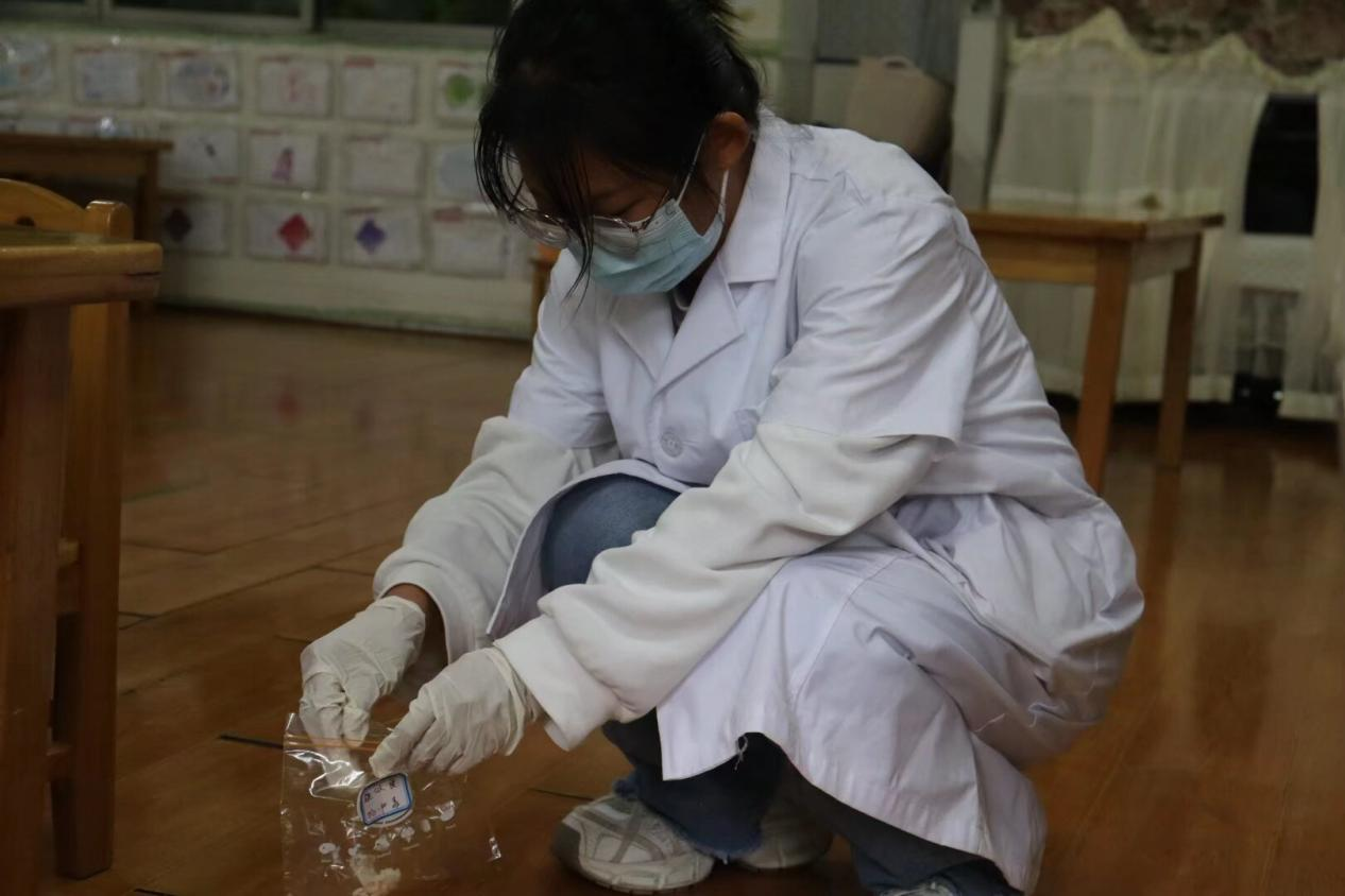 演练过程中,当中二班幼儿出现疑似食物中毒症状时,当班老师第一时间安抚幼儿情绪并向园领导详细汇报;保健医生迅速赶赴班级,为幼儿测量体温并结合症状进行初步研判,班级教师同步组织其余幼儿有序疏散至安全区域,保育员则规范封存呕吐物以备后续检验,并在做好自身防护后对事发区域彻底消毒。与此同时,幼儿园保健医生分头排查全园幼儿健康状况,安全分管领导火速前往厨房,封存当日所有食材、暂停午点供应,对留样柜贴封条并封锁厨房操作间,为后续调查保留完整现场。