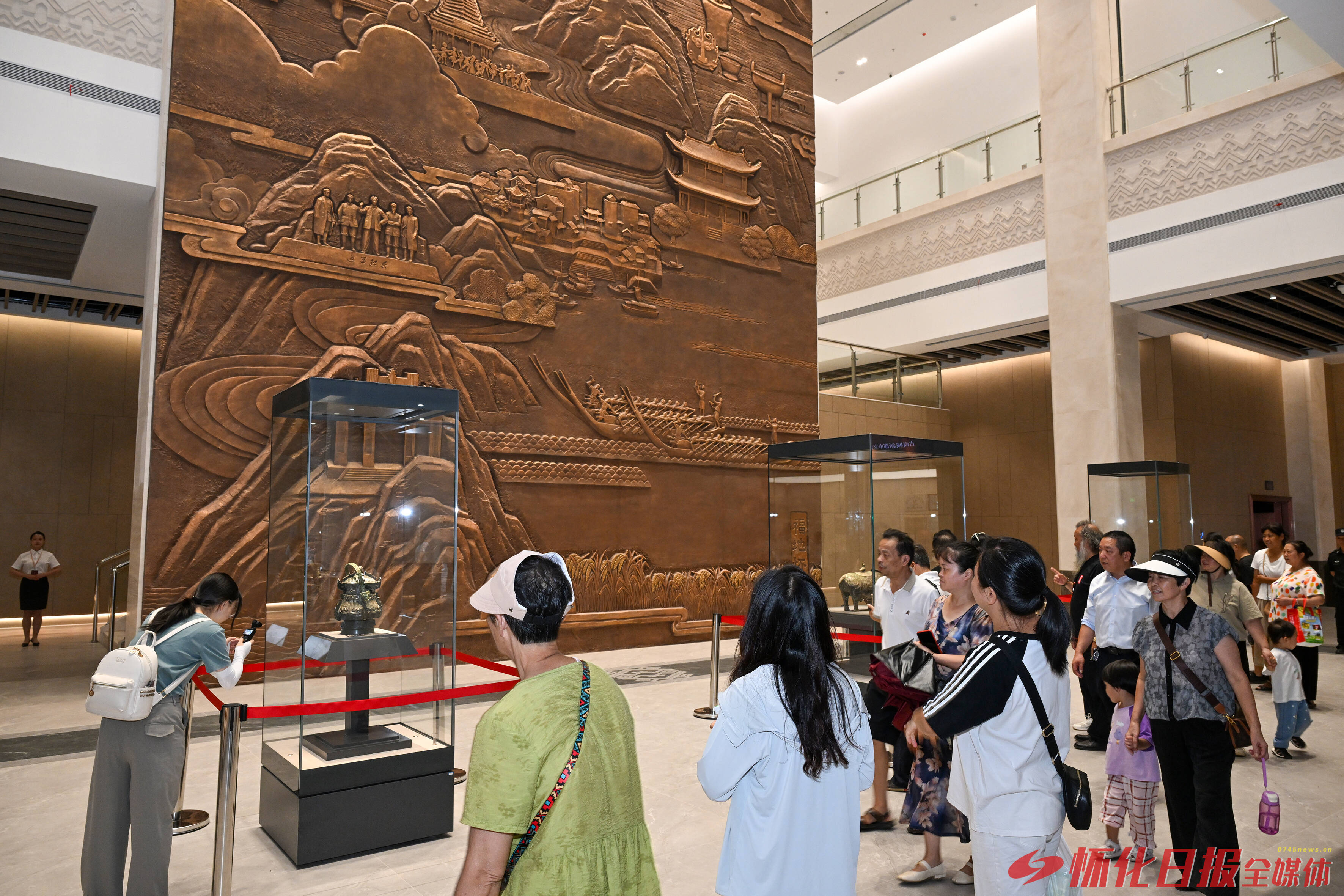 9月12日,怀化市博物馆(新馆)正式开馆,成为怀化文旅增添新地标。该馆面积约1.4万平方米,馆藏文物1.6万余件(套),推出了“怀化历史文化陈列展”“五溪木雕文化展”“怀化人文数字展”“怀化火车文化主题展”等专题展览。通过实物展陈、场景复原、多媒体互动等多元现代化手段,全方位呈现怀化从古至今的发展脉络、厚重的历史文脉、独具特色的民俗风情等。