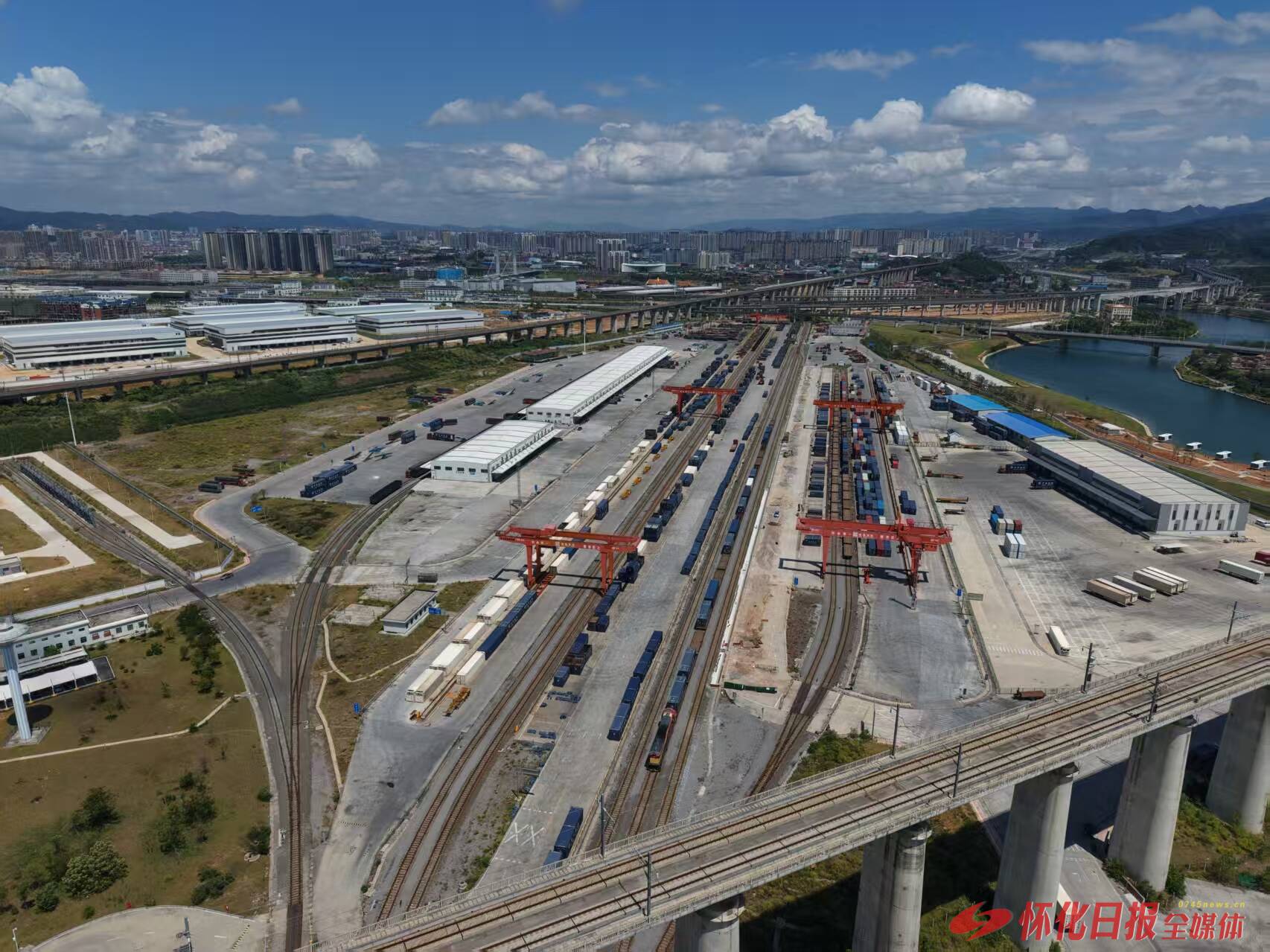 (忙碌的怀化国际陆港 全媒体记者 张卓 摄)