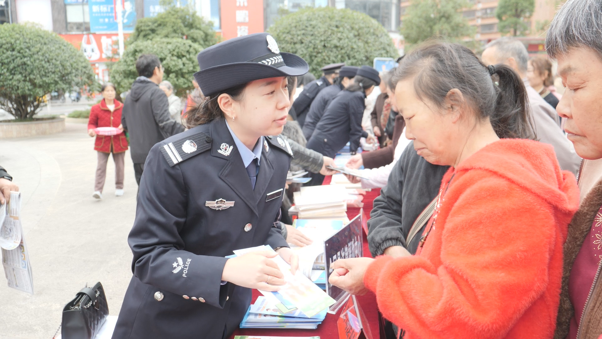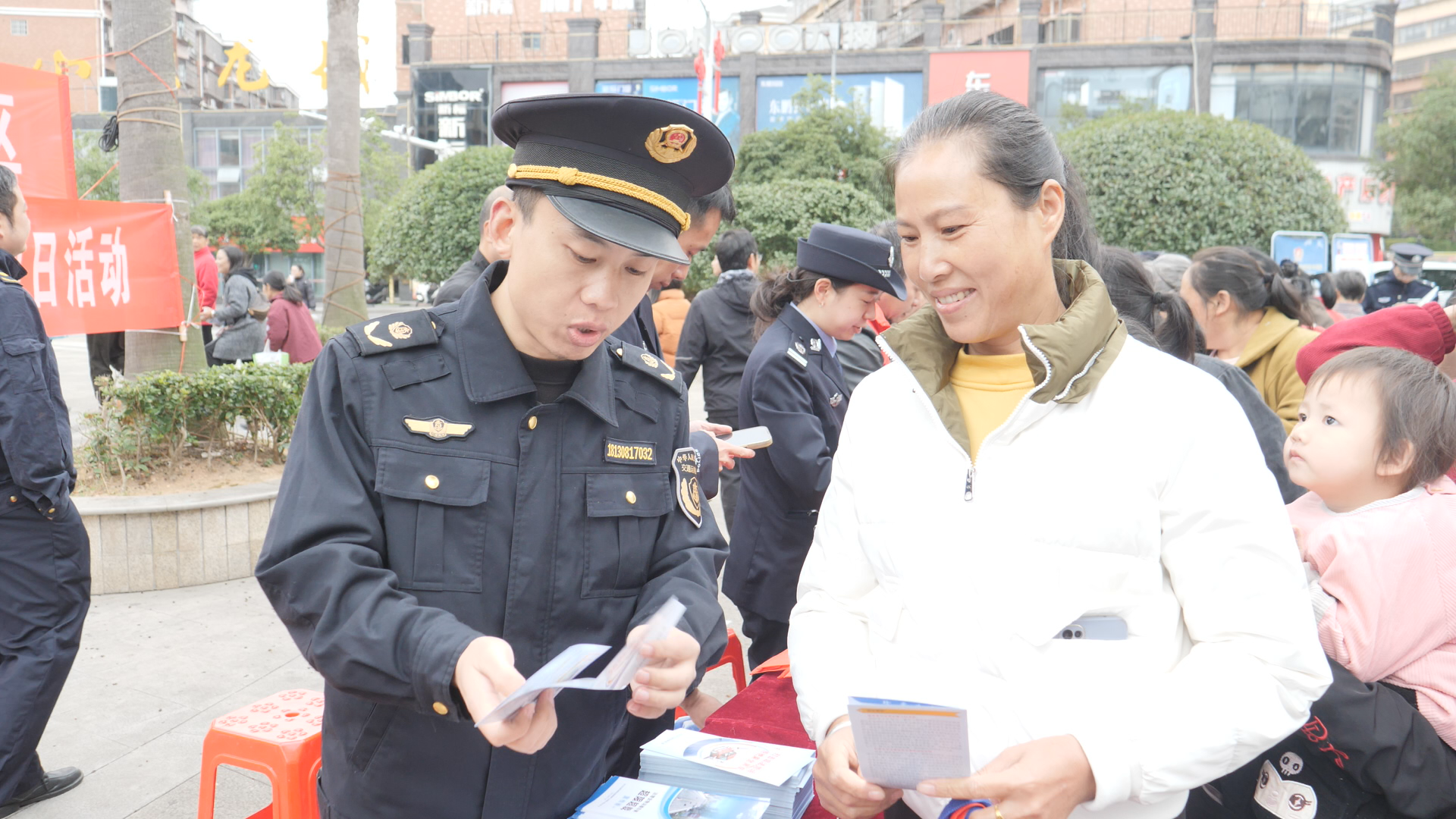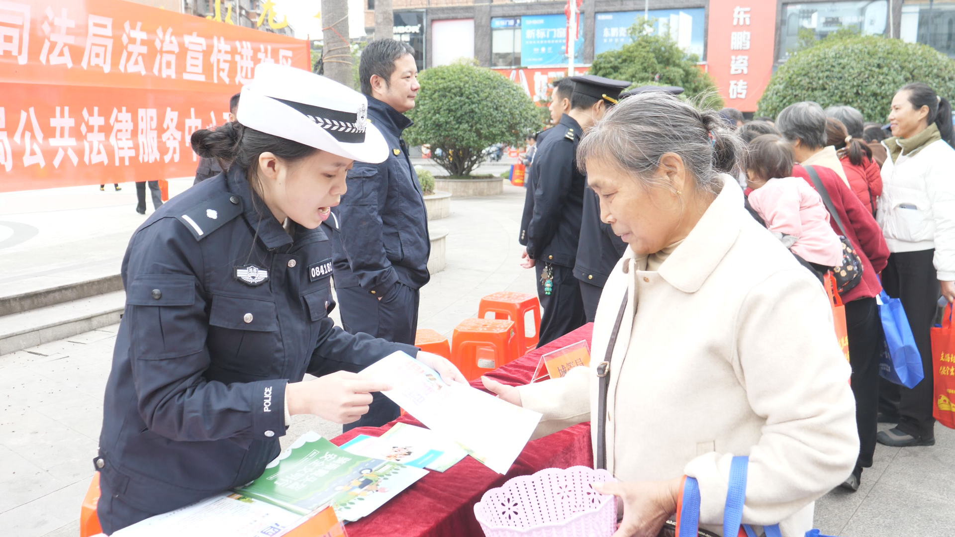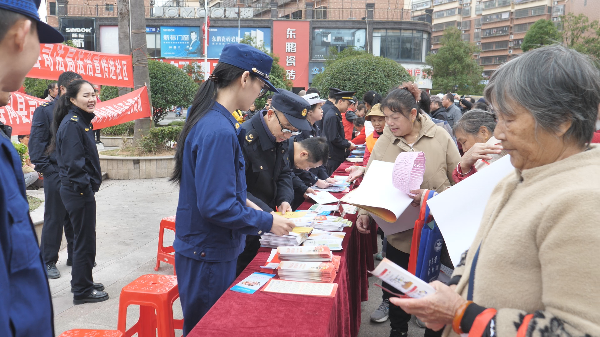 广场的大屏幕还循环播放着相关部门精心制作的法治宣传视频。视频内容丰富多样,既有生动的法治动画,以趣味形式展现法律条文;也有真实的案例剖析,通过还原事件经过,让群众深刻认识到违法犯罪的危害。不少市民被屏幕内容吸引,纷纷驻足观看。