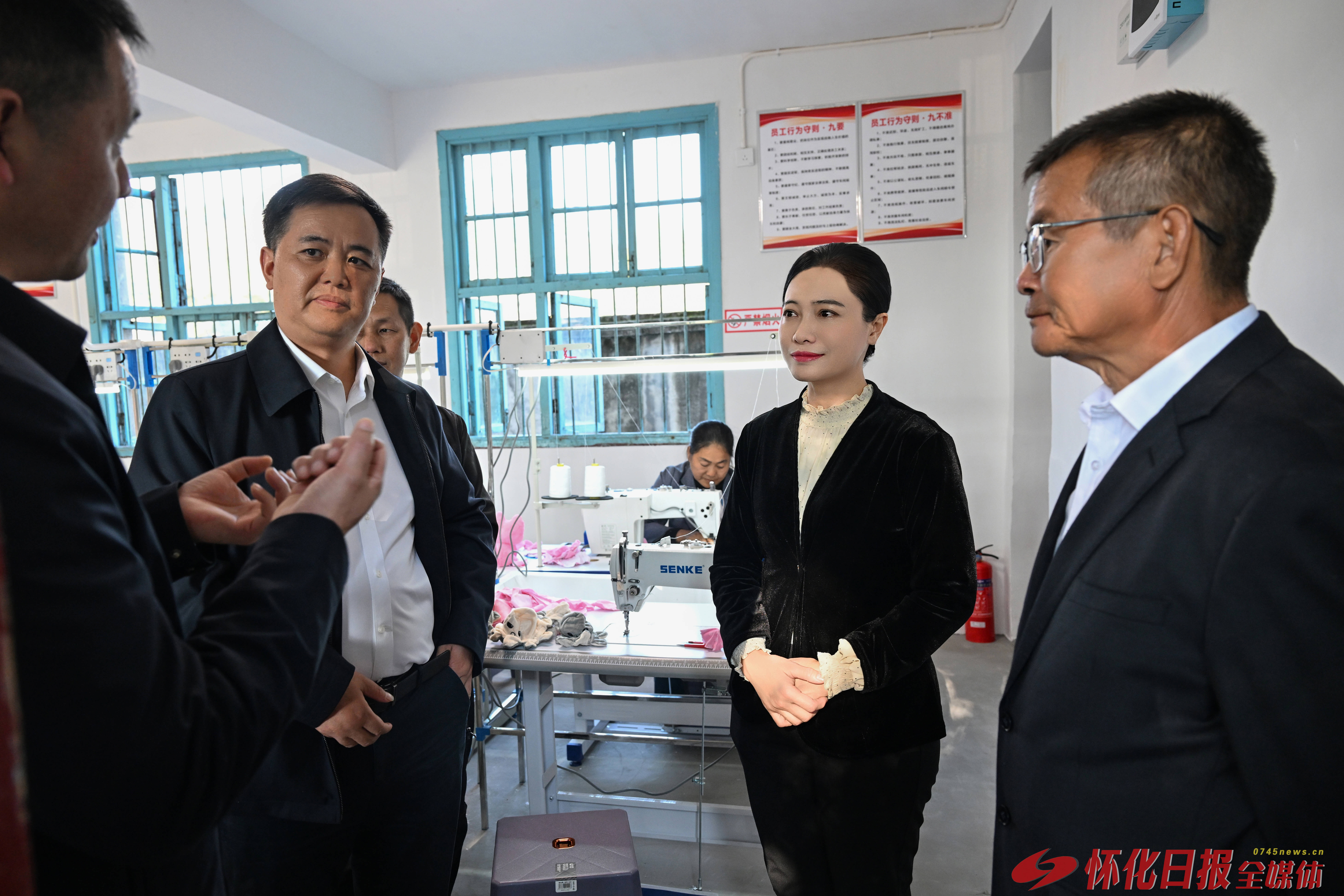 (11月16日,市委副书记、代市长韦朝晖深入溆浦调研。图为韦朝晖在思蒙镇黄家庄村详细了解乡村振兴帮扶车间吸纳农村劳动力就业等情况。怀化日报全媒体记者 吴涛 摄)