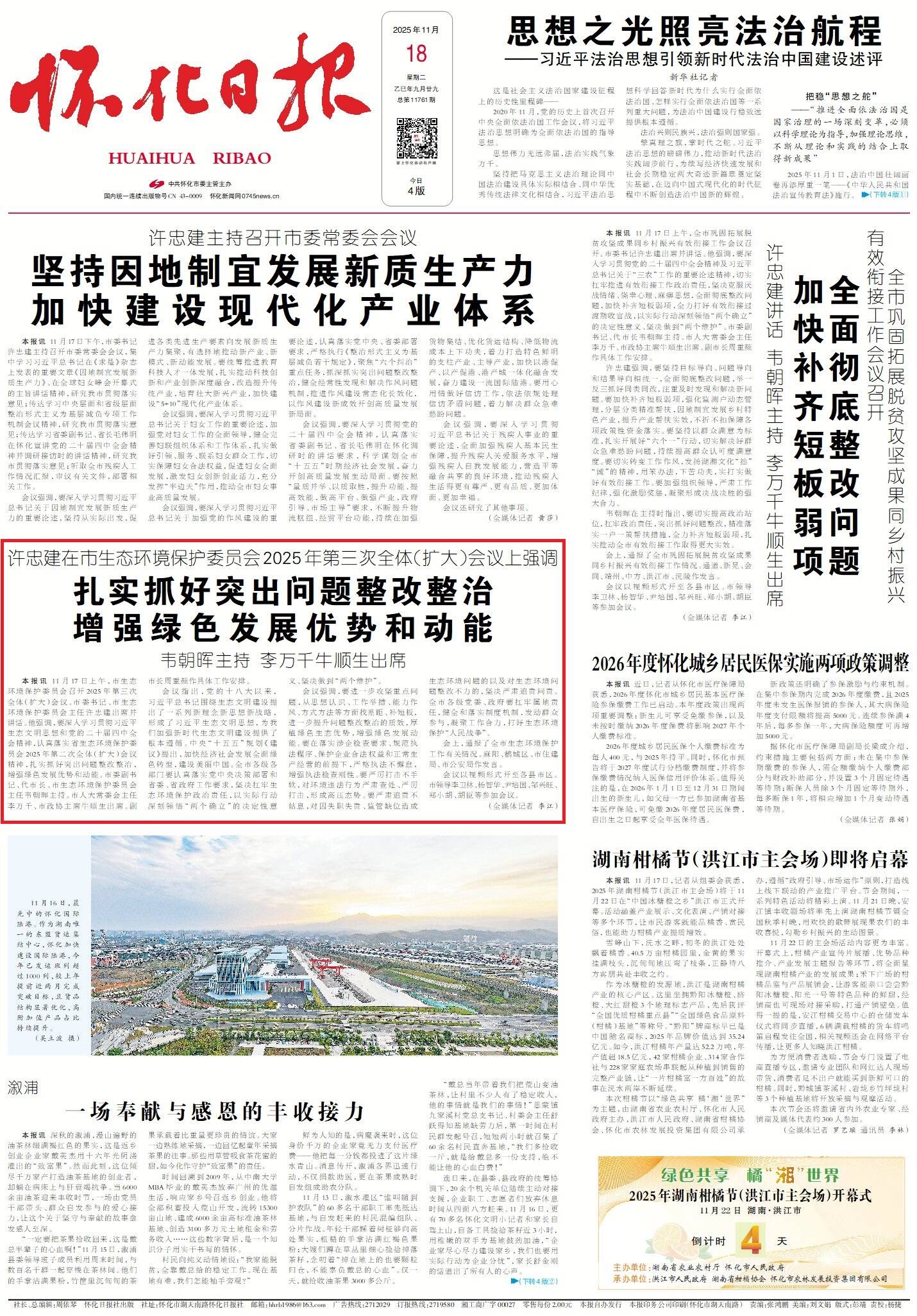 怀化日报全媒体讯11月17日上午,市生态环境保护委员会召开2025年第三次全体(扩大)会议。市委书记、市生态环境保护委员会主任许忠建出席并讲话。他强调,要深入学习贯彻习近平生态文明思想和党的二十届四中全会精神,认真落实省生态环境保护委员会2025年第二次全体(扩大)会议精神,扎实抓好突出问题整改整治,增强绿色发展优势和动能。市委副书记、代市长、市生态环境保护委员会主任韦朝晖主持。市人大常委会主任李万千、市政协主席牛顺生出席。副市长周重颜作具体工作安排。