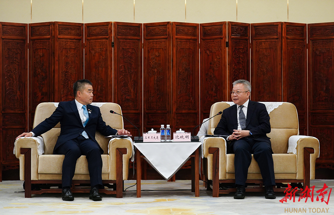 沈晓明代表省委、省政府对三日月大造一行表示欢迎。他说,湖南省与滋贺县40多年友好交流取得了丰硕成果。当前湖南正沿着习近平主席指引的方向,持续用力打造“三个高地”,加快推动高质量发展。湖南特别是长沙生活成本低、教育医疗条件好,产业基础扎实,有吸引年轻人的城市气质。希望双方在青少年交往、经贸往来、健康养老等领域深化交流合作,推动友城交往迈向更高水平。