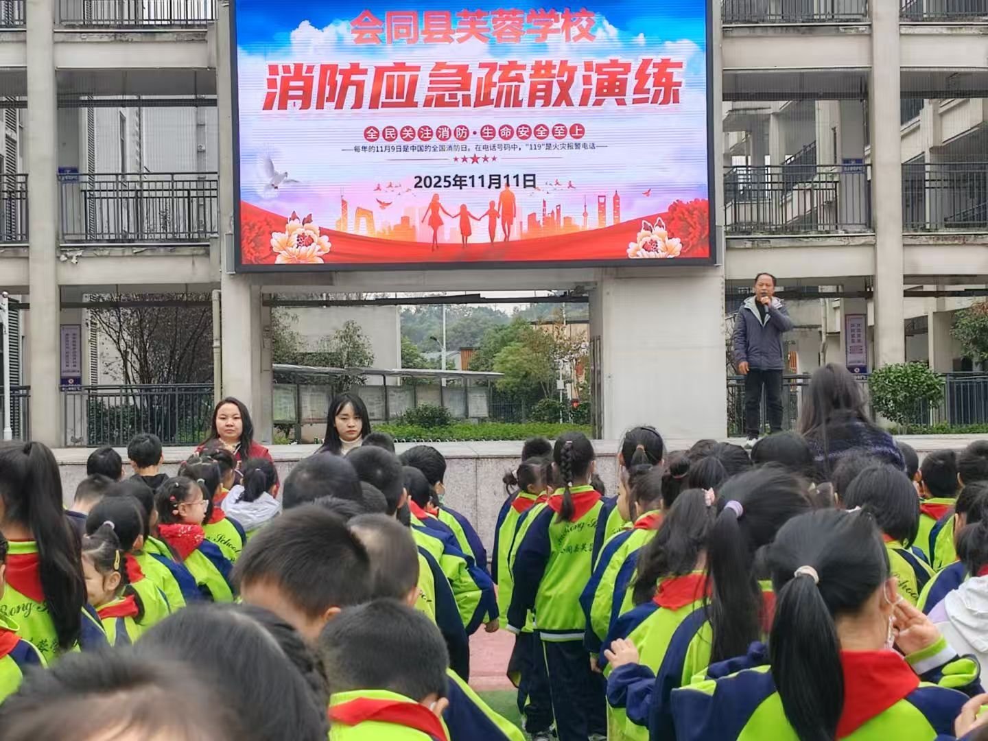 11月11日,会同县芙蓉学校组织全校师生开展消防应急疏散演练,筑牢安全防线。