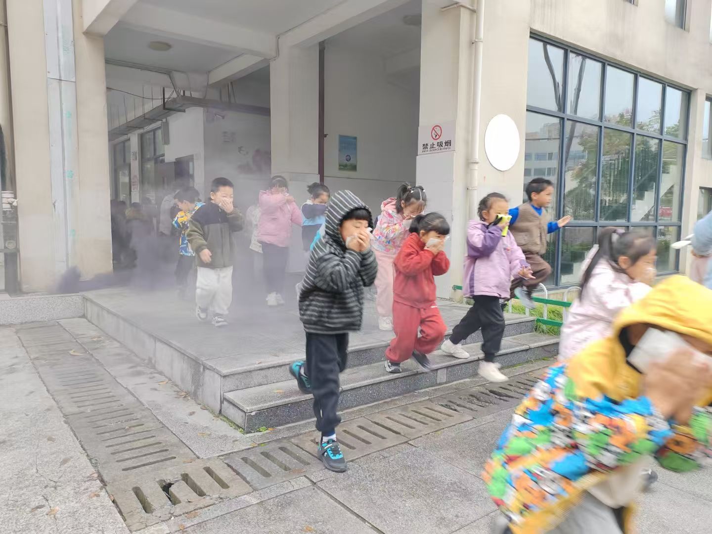 演练前,各班举行“全民消防、生命至上”主题班会,通过班会普及火灾预防、火场逃生、报警等消防安全知识。警报响起,班主任引导学生捂口鼻、弯腰低姿有序撤离。大家紧随老师,用时2分59秒全部安全集结。