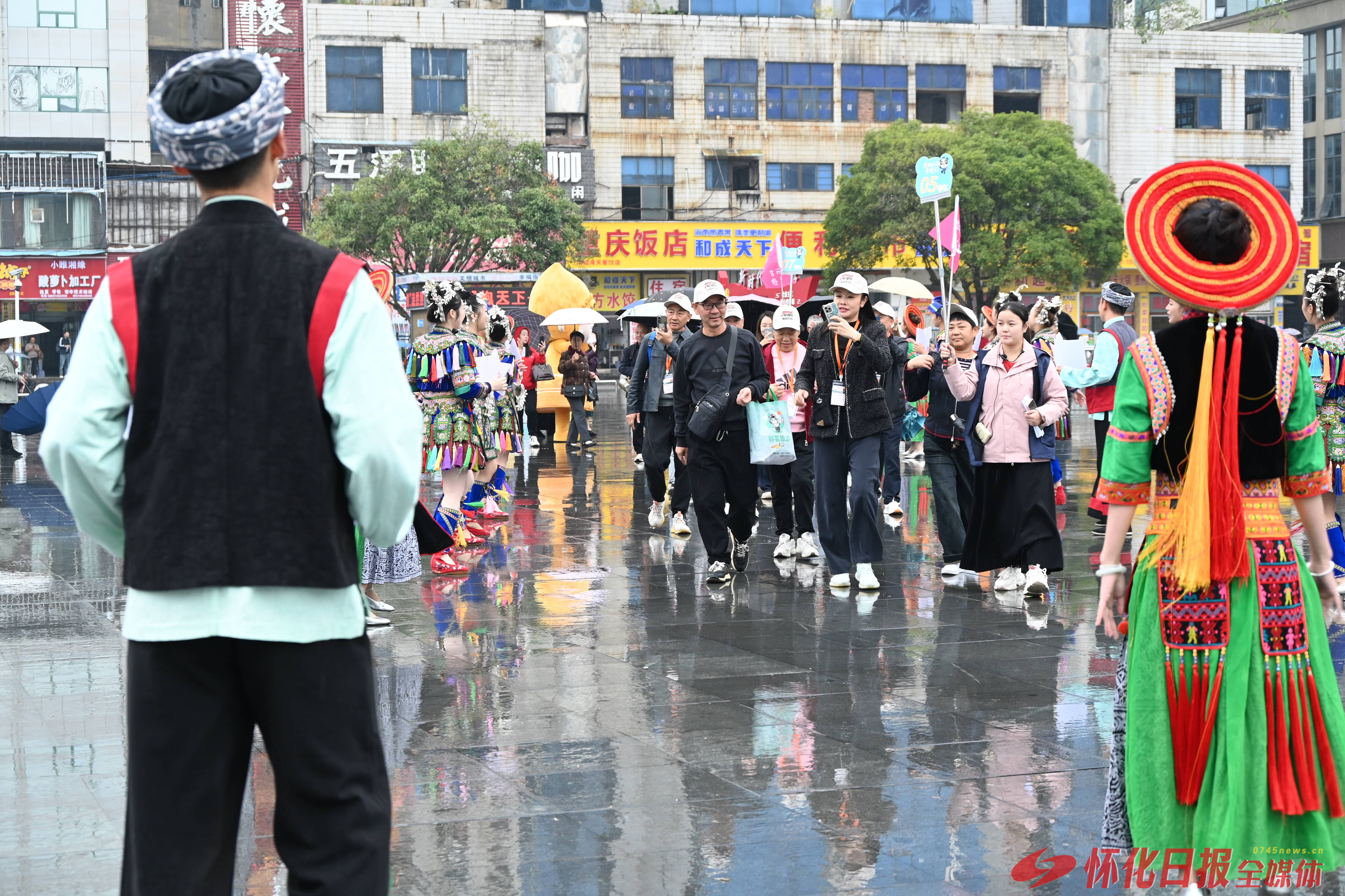 在怀化火车站出站口、广场上,身着传统服饰的阿哥阿妹以欢快舞步、热情歌曲瞬间点燃了现场气氛,238名游客兴趣瞬间被调动。“怀化还是第一次来,没想到这么热情好客,让我非常期待接下来的行程。”刚下车就被简单而隆重的欢迎仪式所吸引的旅客高兴地表示。
