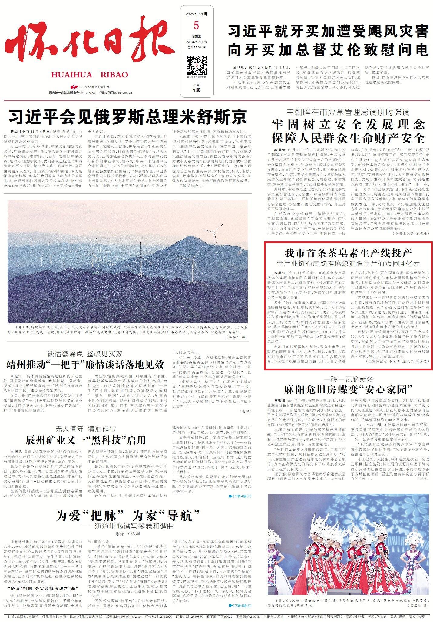 怀化日报全媒体讯近日,随着首批一百吨茶皂素产品从怀化盛源油脂有限公司顺利发往客户,标志着怀化市首条从油饼到茶粕中提取茶皂素的完整产业链生产线全面投产并实现效益。这是我市推动油茶产业延链补链、发展循环经济取得的又一项重大突破。