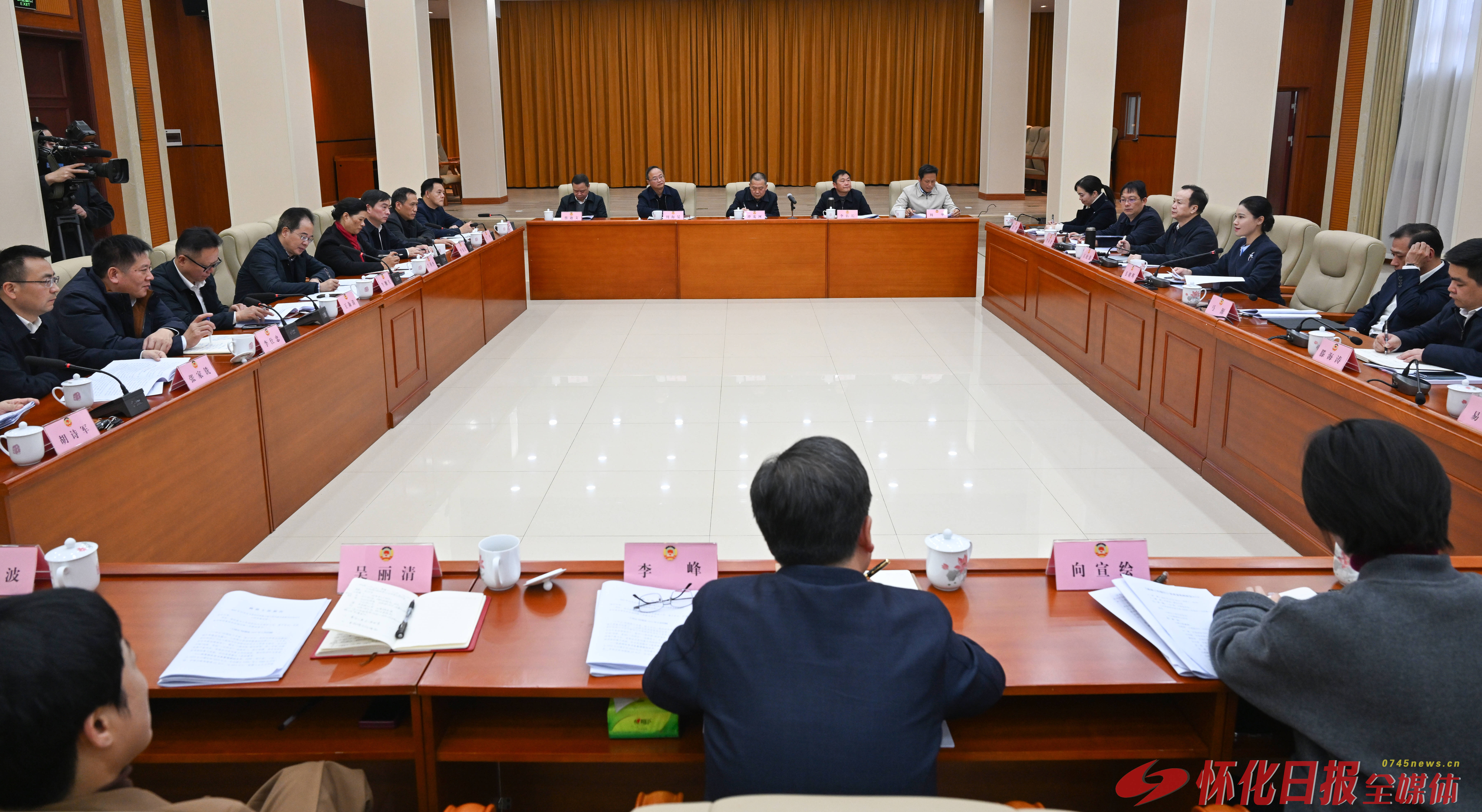 (12月16日上午,市委副书记、代市长韦朝晖带队赴市政协机关,就《政府工作报告》征求意见建议。以上照片由怀化日报全媒体记者 吴涛 摄)