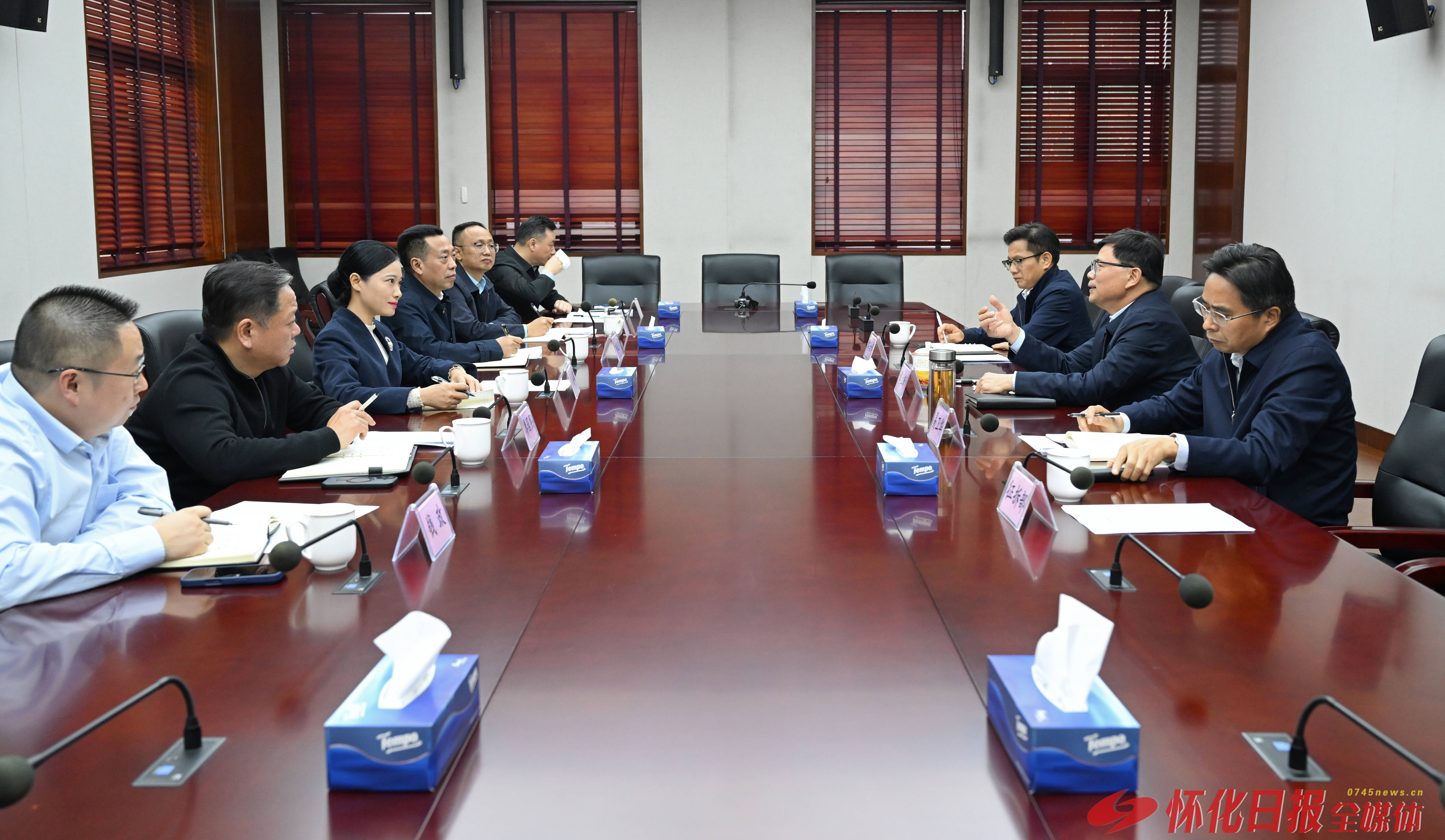 (12月8日,市委副书记、代市长韦朝晖赴省直部门和重点企业对接工作。图为韦朝晖在沪昆客专湖南公司进行工作会谈。怀化日报全媒体记者 吴涛 摄)