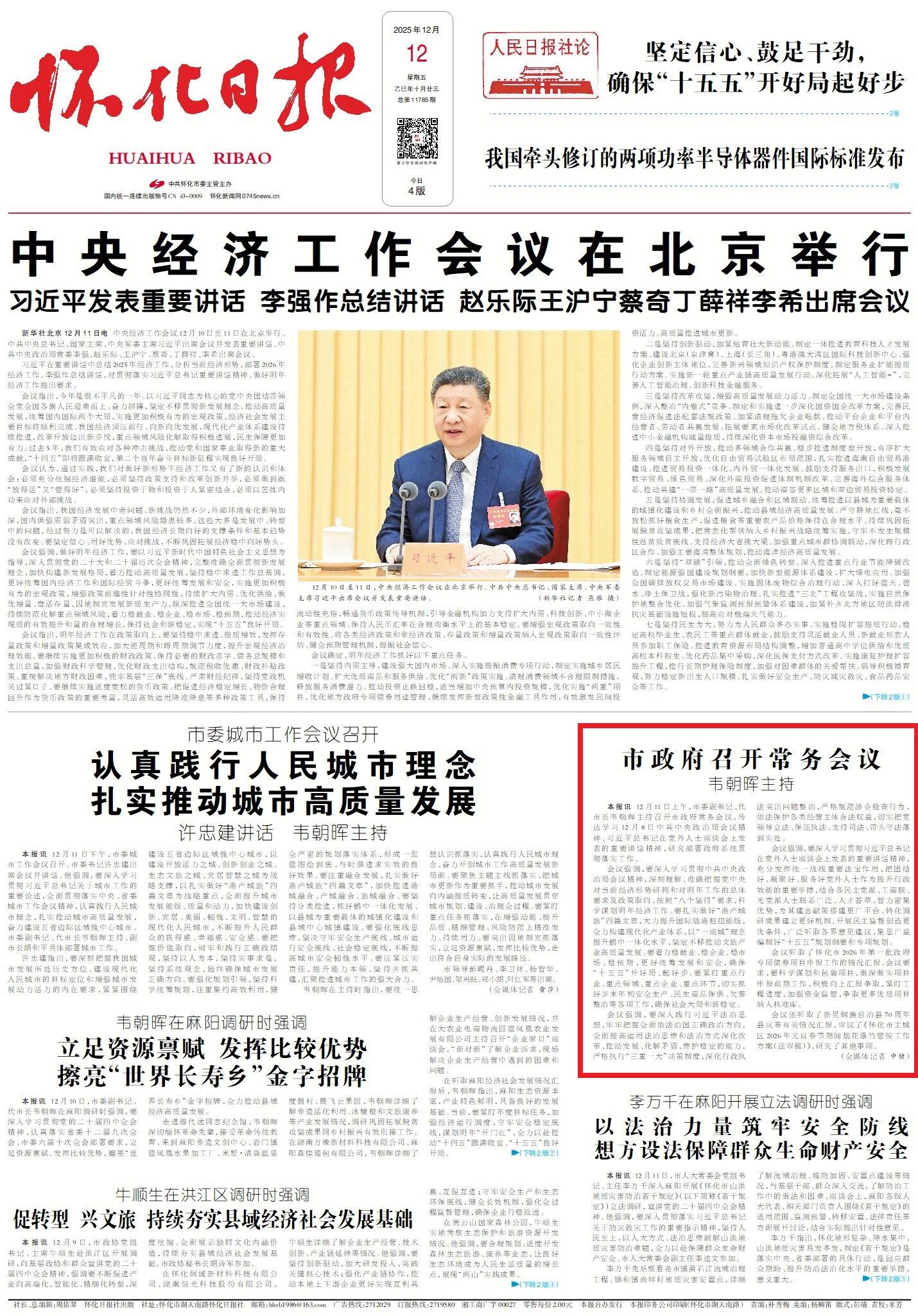 怀化日报全媒体讯12月11日上午,市委副书记、代市长韦朝晖主持召开市政府常务会议,传达学习12月8日中共中央政治局会议精神、习近平总书记在党外人士座谈会上发表的重要讲话精神,研究部署政府系统贯彻落实工作。