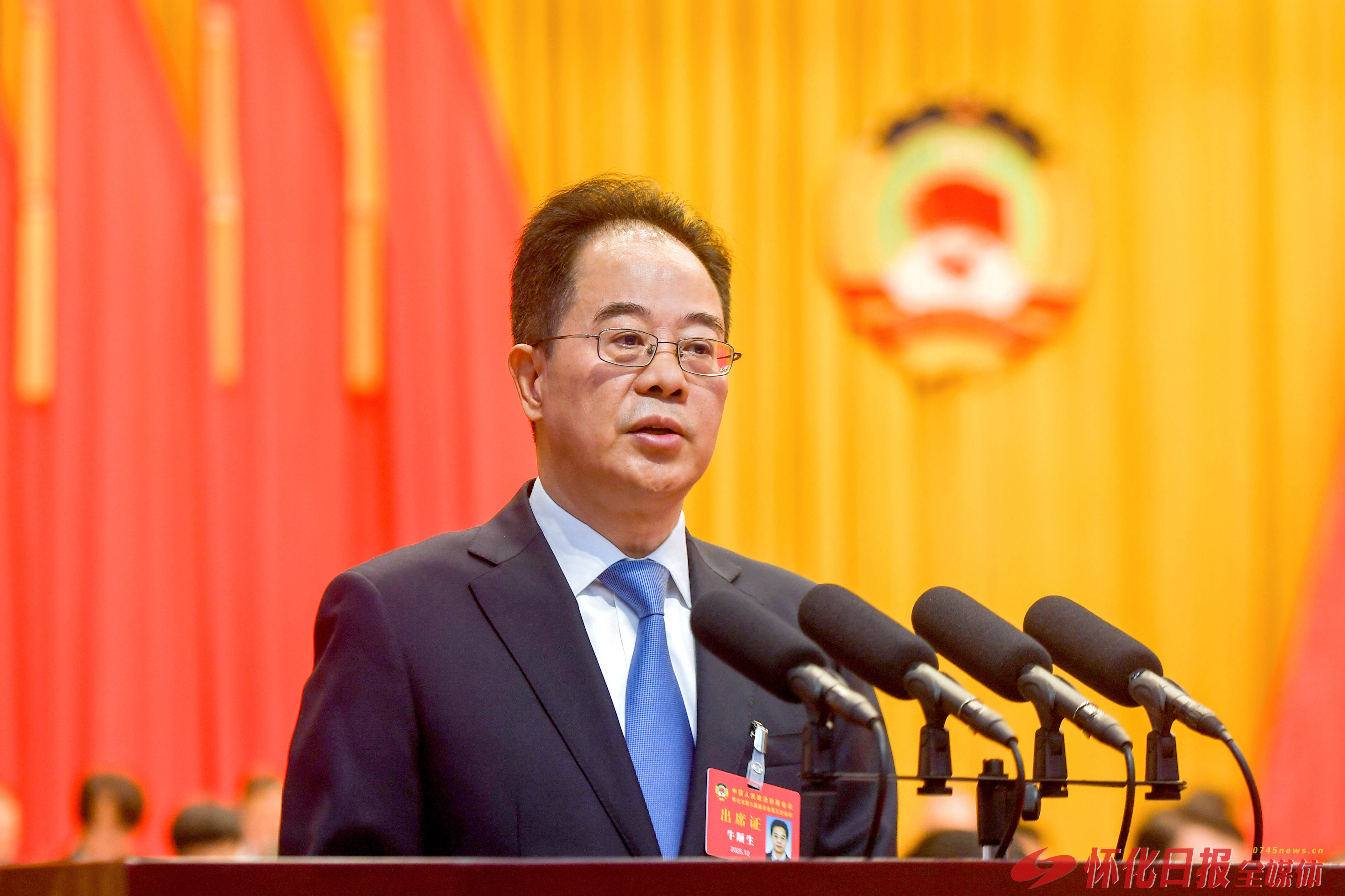 牛顺生代表政协怀化市第六届委员会常务委员会向大会作工作报告。(以上照片均由怀化日报全媒体记者 杨智伟 潘雨 摄)