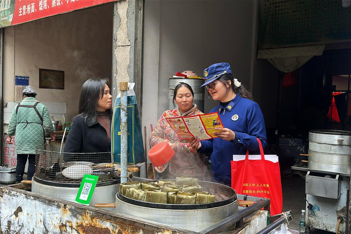 针对冬季用电用火高峰,宣传人员聚焦家庭火灾隐患、电动车违规充电、楼道堵塞、取暖设备使用等关键问题,向居民和商户精准科普。在小区,通过发放《家庭防火指南》《电动车安全须知》等资料,提醒居民做到“人走电断、火灭”,及时清理可燃物,杜绝楼道停放电动车或私拉电线充电。同时利用宣传栏、电子屏扩大警示覆盖面。