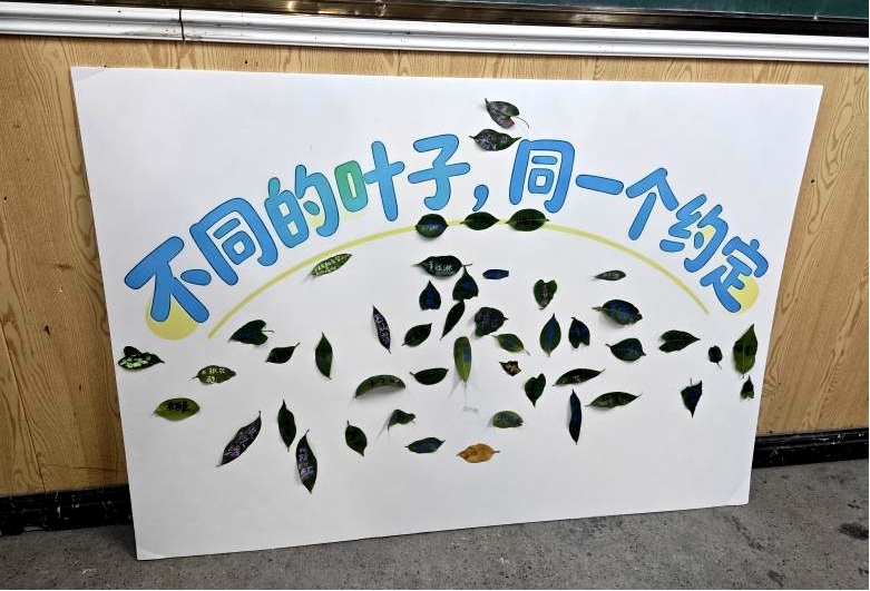 “变废为宝”工坊里,纸杯、落叶化身创意花盆,孩子们播种植物种子,将农耕文明的“孕育生命”延续至指尖。活动高潮中,孩子们在“承诺墙”贴上绿叶卡片,以“不同叶子,同一约定”立下守护誓言,获颁“环保小卫士”贴纸,仪式感与责任感交织。