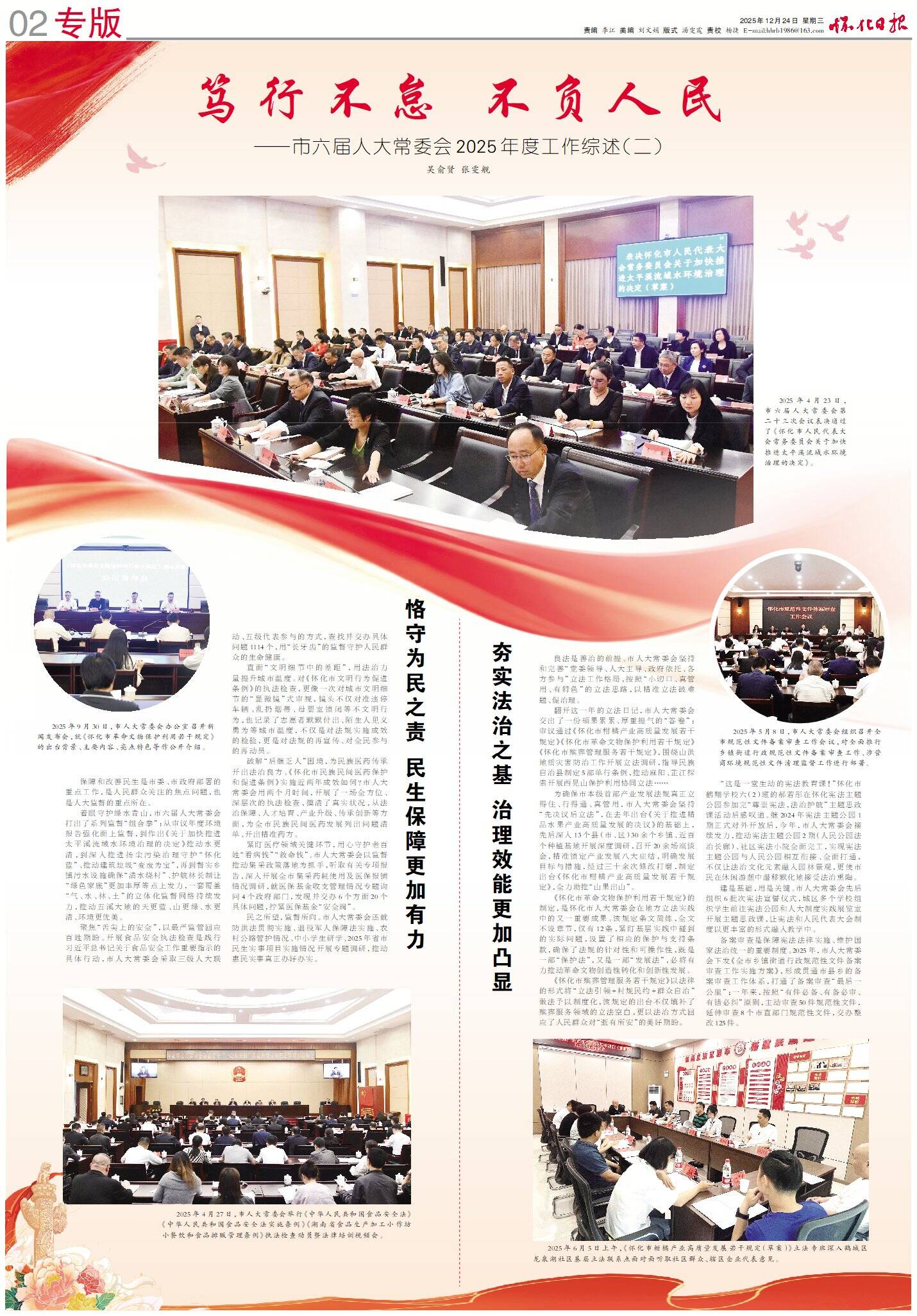 翻开这一年的立法日记,市人大常委会交出了一份硕果累累、厚重提气的“答卷”:审议通过《怀化市柑橘产业高质量发展若干规定》《怀化市革命文物保护利用若干规定》《怀化市殡葬管理服务若干规定》,围绕山洪地质灾害防治工作开展立法调研,指导民族自治县制定5部单行条例,推动麻阳、芷江探索开展西晃山保护利用协同立法……
