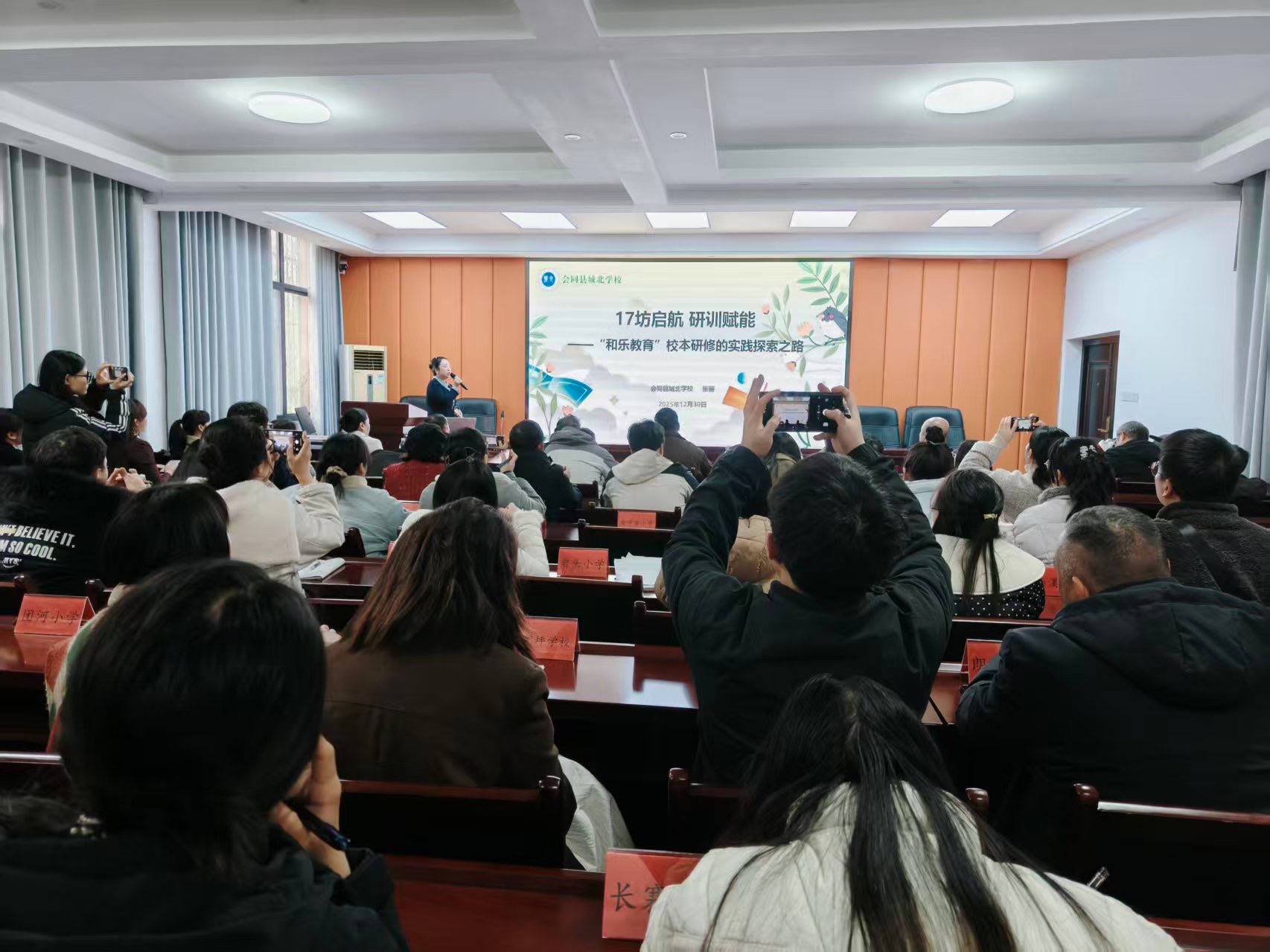 本次汇报大体分为两类:一是聚焦课堂实效,目标明晰;二是以教师成长为基石,赋能育新人。青朗学校宋俊霞老师带来的《学段分层深耕课堂,红色浸润培育荣光》聚焦乡村留守儿童的成长;城北学校张丽老师带来的《17坊起航,研修赋能——“和乐教育”校本研修的实践探索之路》,成立学科工作坊和劳动工作坊、书法工作坊,剪纸工作坊等特色工作坊,同时以课例研修为主,促进资源共享与能力互补。