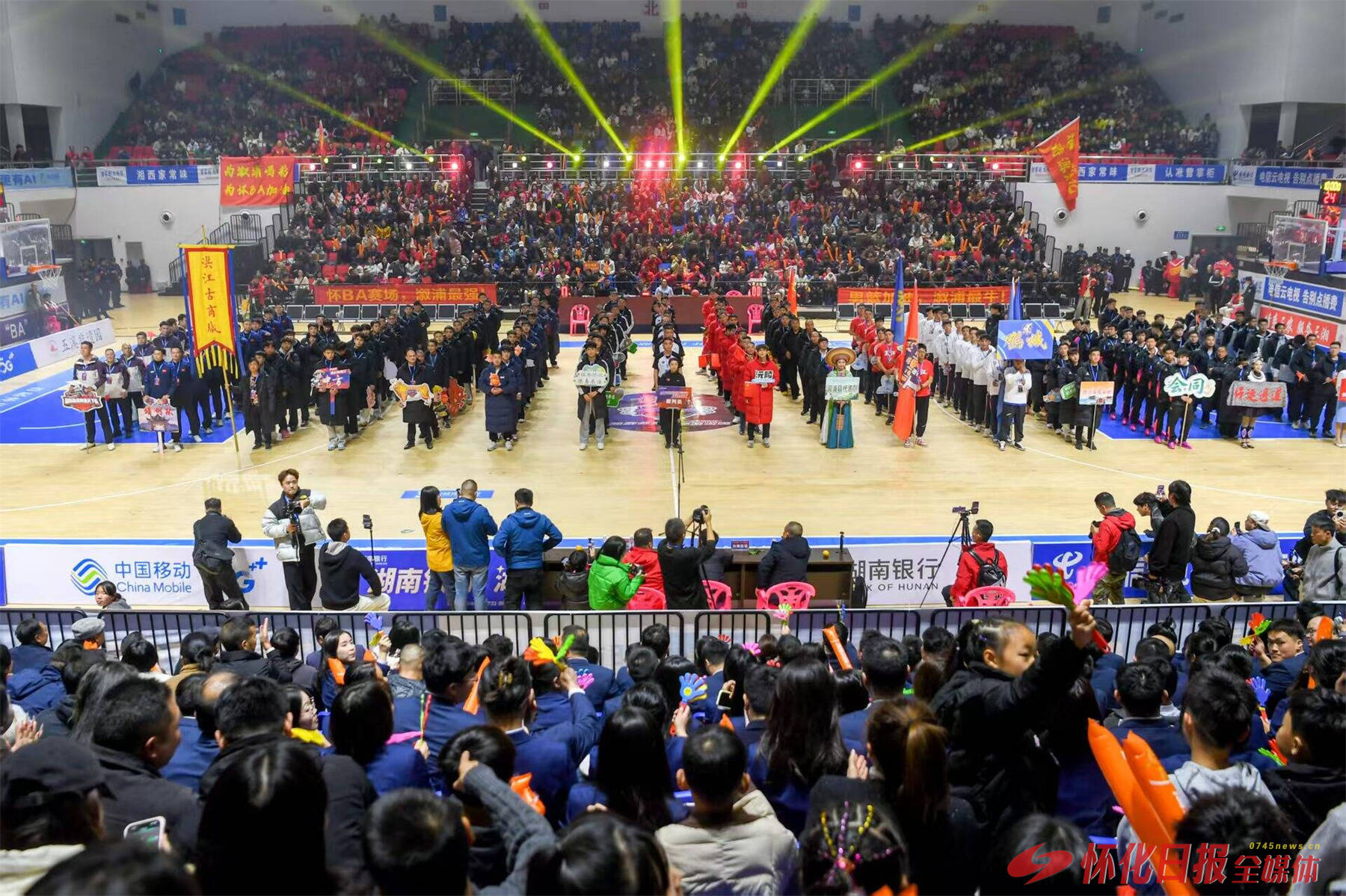 (12月6日晚,“湖南银行杯”首届怀化市篮球联赛(怀BA)在怀化体育中心开幕。)